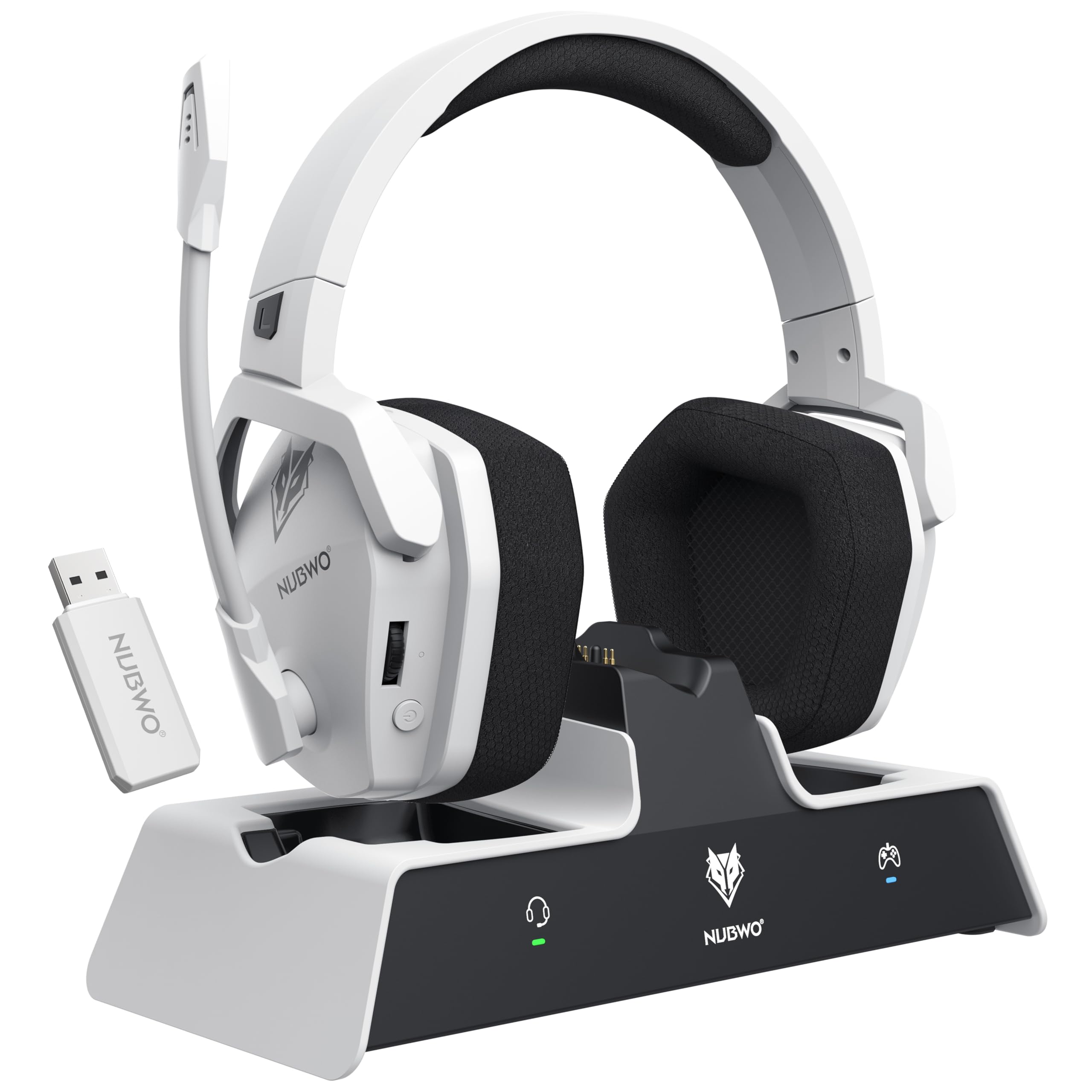 NUBWO G06 Pro Auriculares inalámbricos para juegos con estación de carga para auriculares y controlador PS5, baja latencia de 17 m