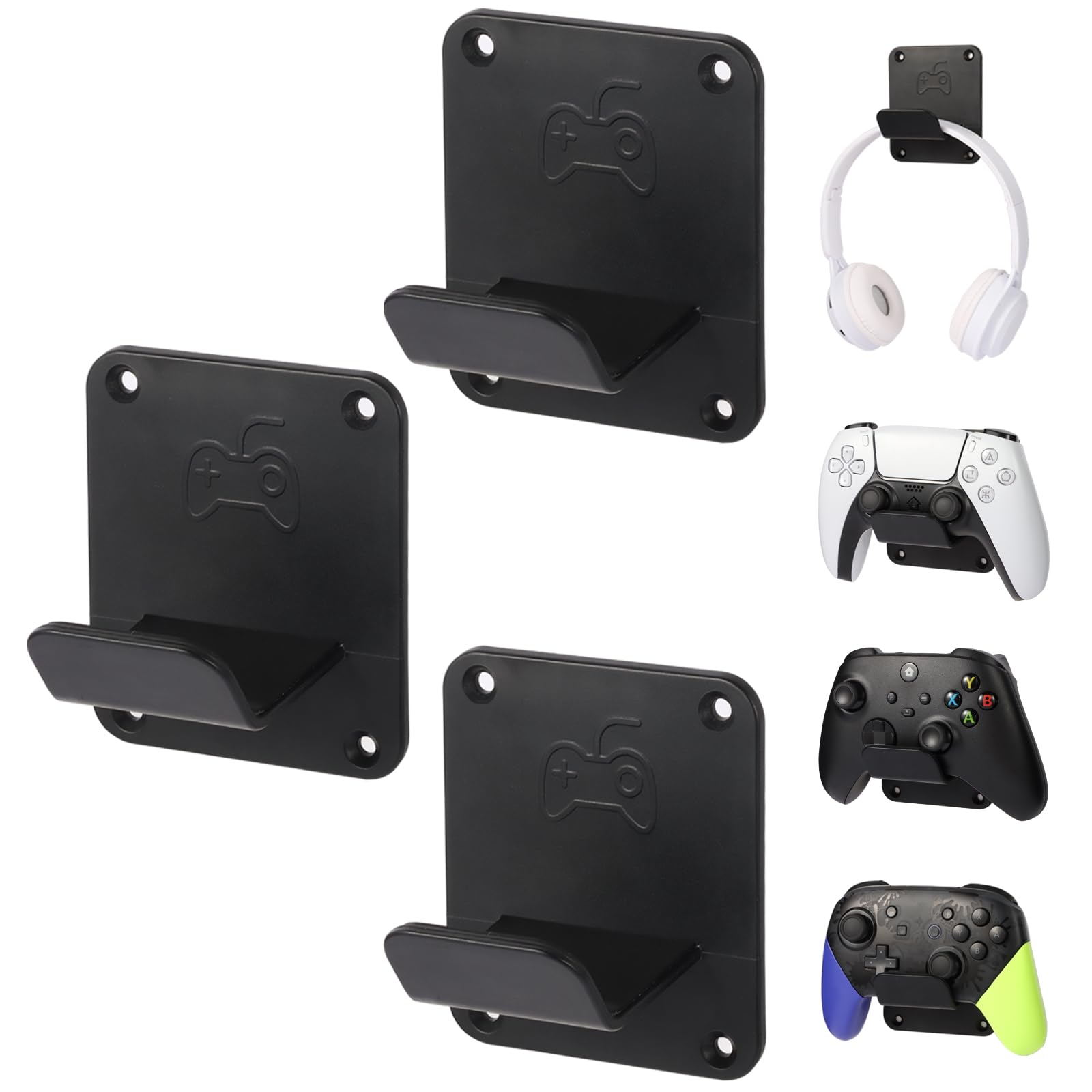 YCKJ-WM-01 – Soportes de pared para controladores y auriculares, 3 soportes de pared con almohadillas antideslizantes, soporte de