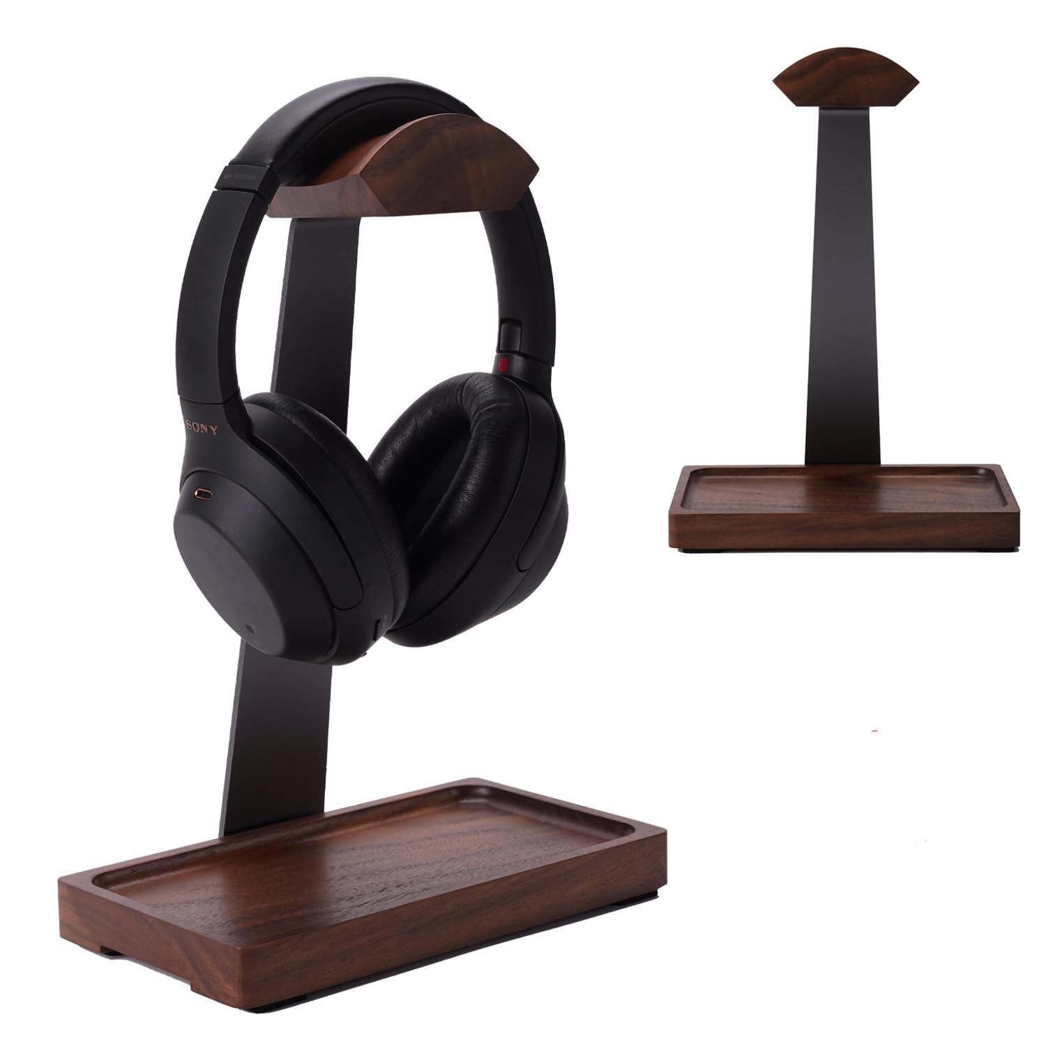 Soporte para auriculares de nogal, soporte de auriculares de madera para escritorio, soporte de auriculares para juegos con base d