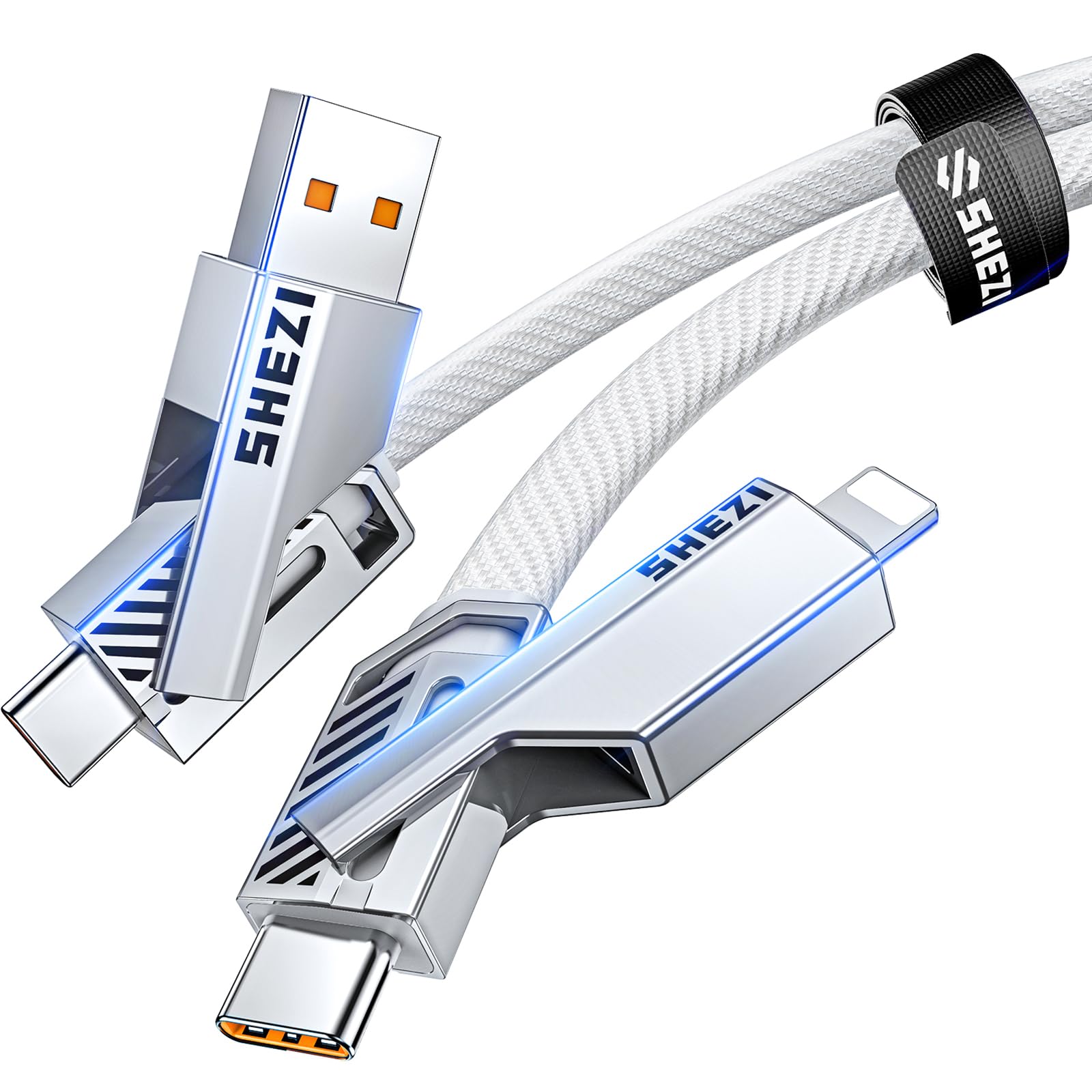 SHEZI Cable USB C 4 en 1 de 60 W, 5 pies, sincronización de datos de 480 Mbps, cable de carga trenzado de nailon plano, cable de c