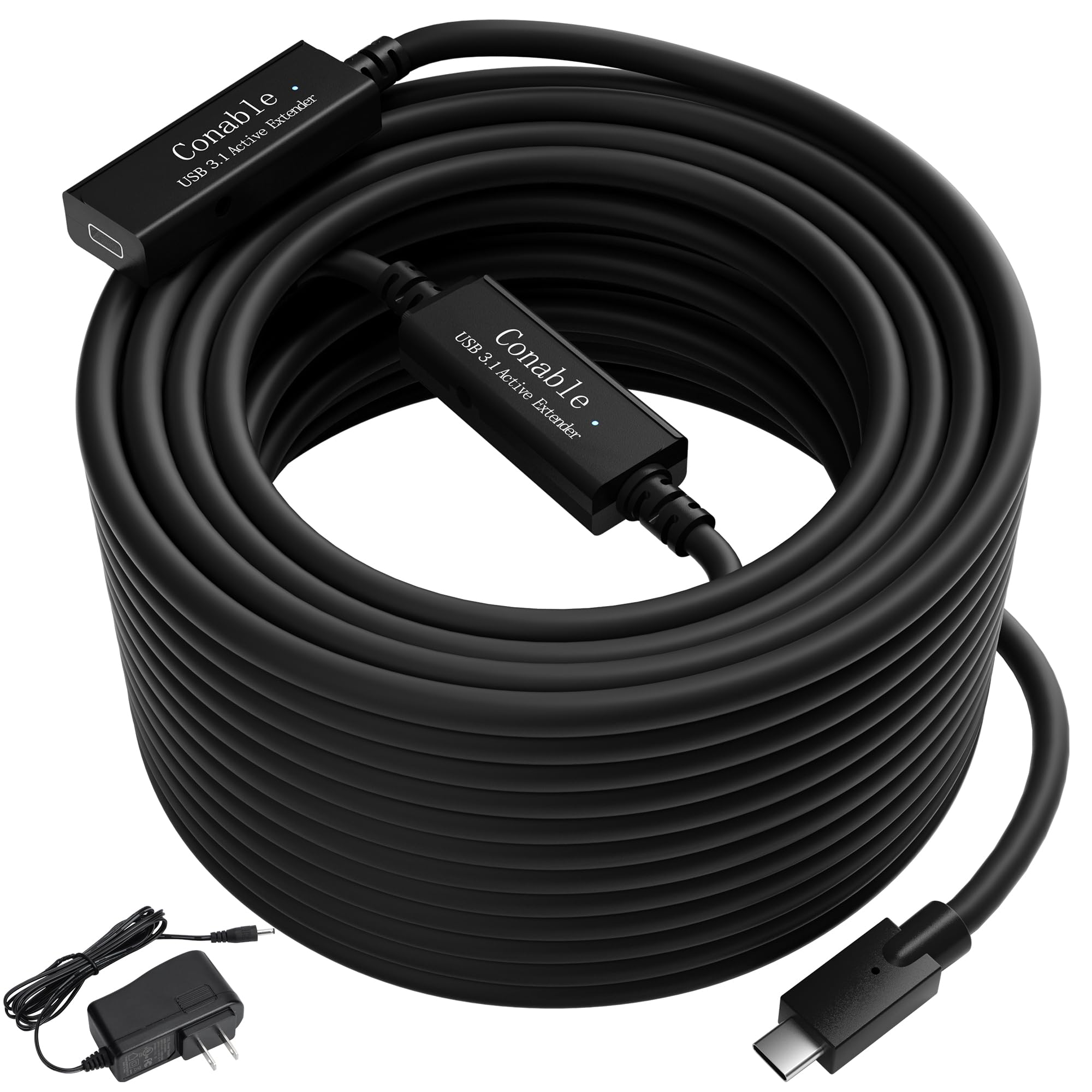 Cable de extensión USB C activo de 50 pies, transferencia USB 3.1 Tipo-C de 5 Gbps, cable repetidor macho a hembra, con 2 chipsets
