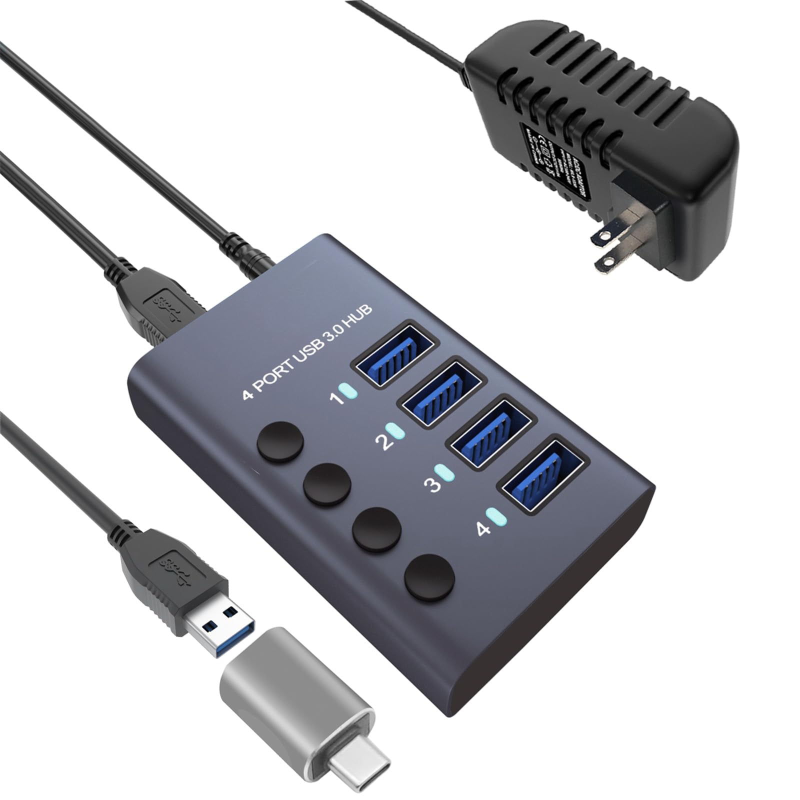 MaxLax Hub USB 3.0 de aluminio de 4 puertos con transferencia de datos USB de 4 puertos, adaptador de corriente de 36 W (12 V/3 A)