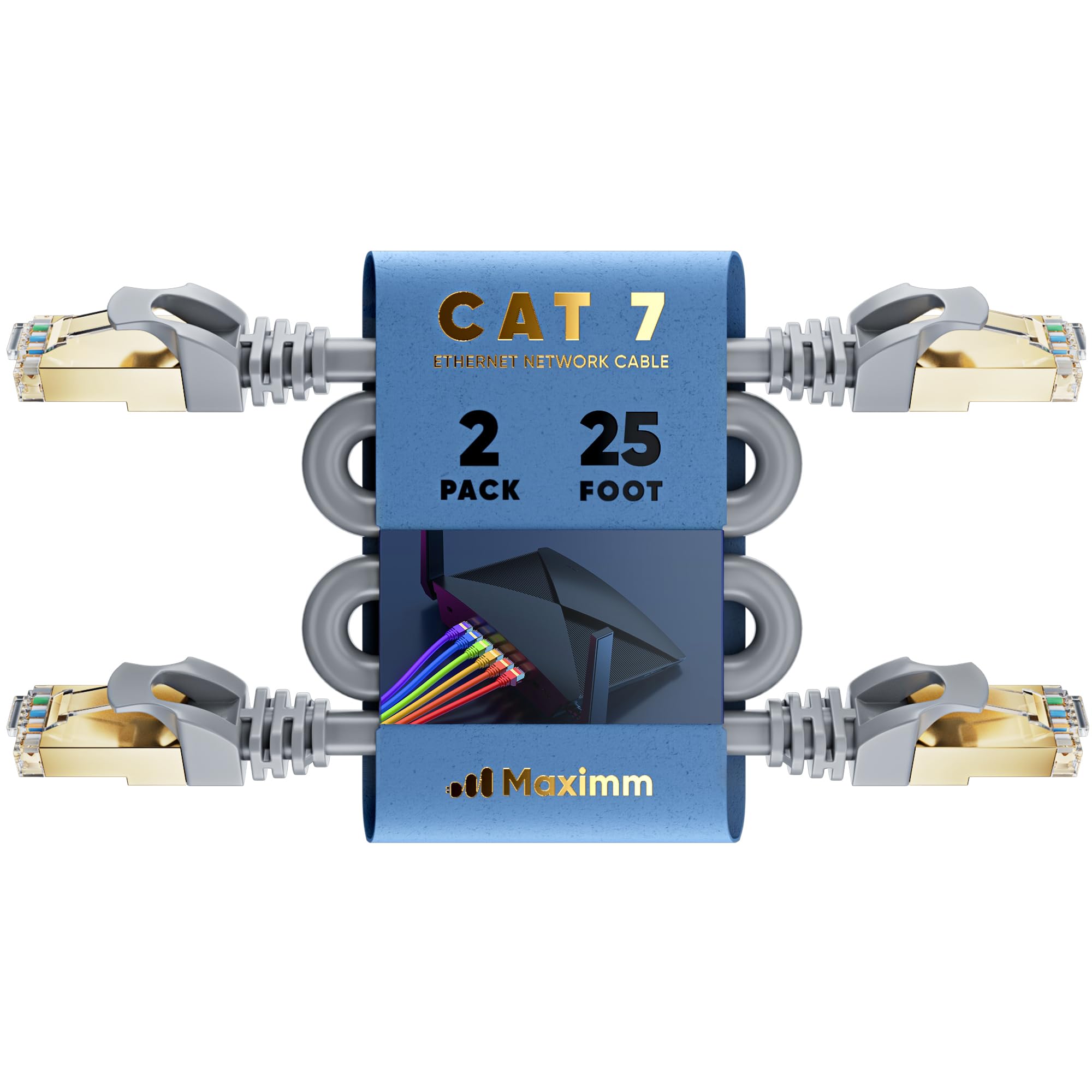 Cable Ethernet Cat 7 de 25 pies – (paquete de 2) cables de conexión de red LAN y red Cat7 de alta velocidad, conectores RJ45, perf