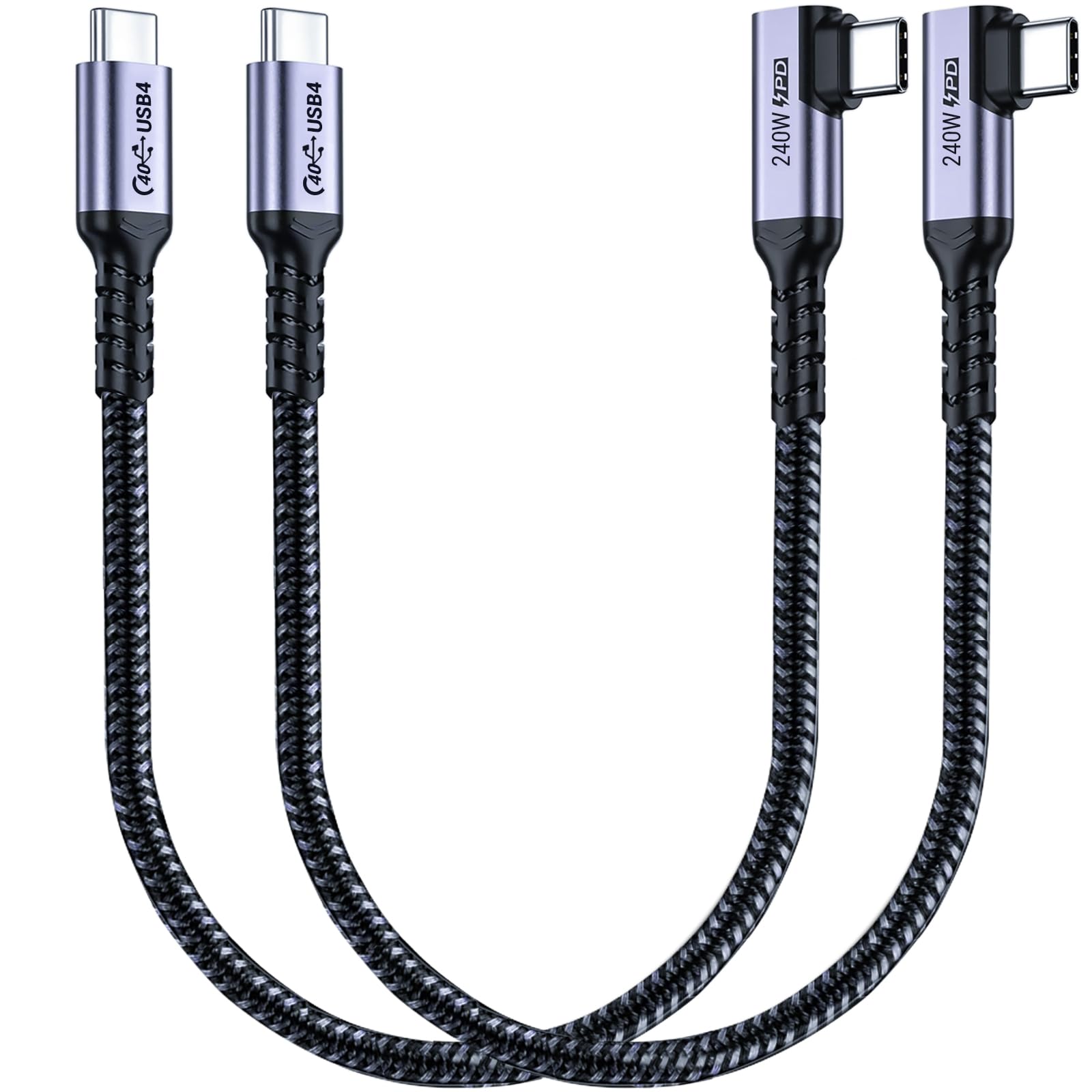 Cable USB 4 de 1 pie en ángulo recto [2 paquetes], cable USB C de 240 W, transferencia de datos de alta velocidad de 40 Gbps con p