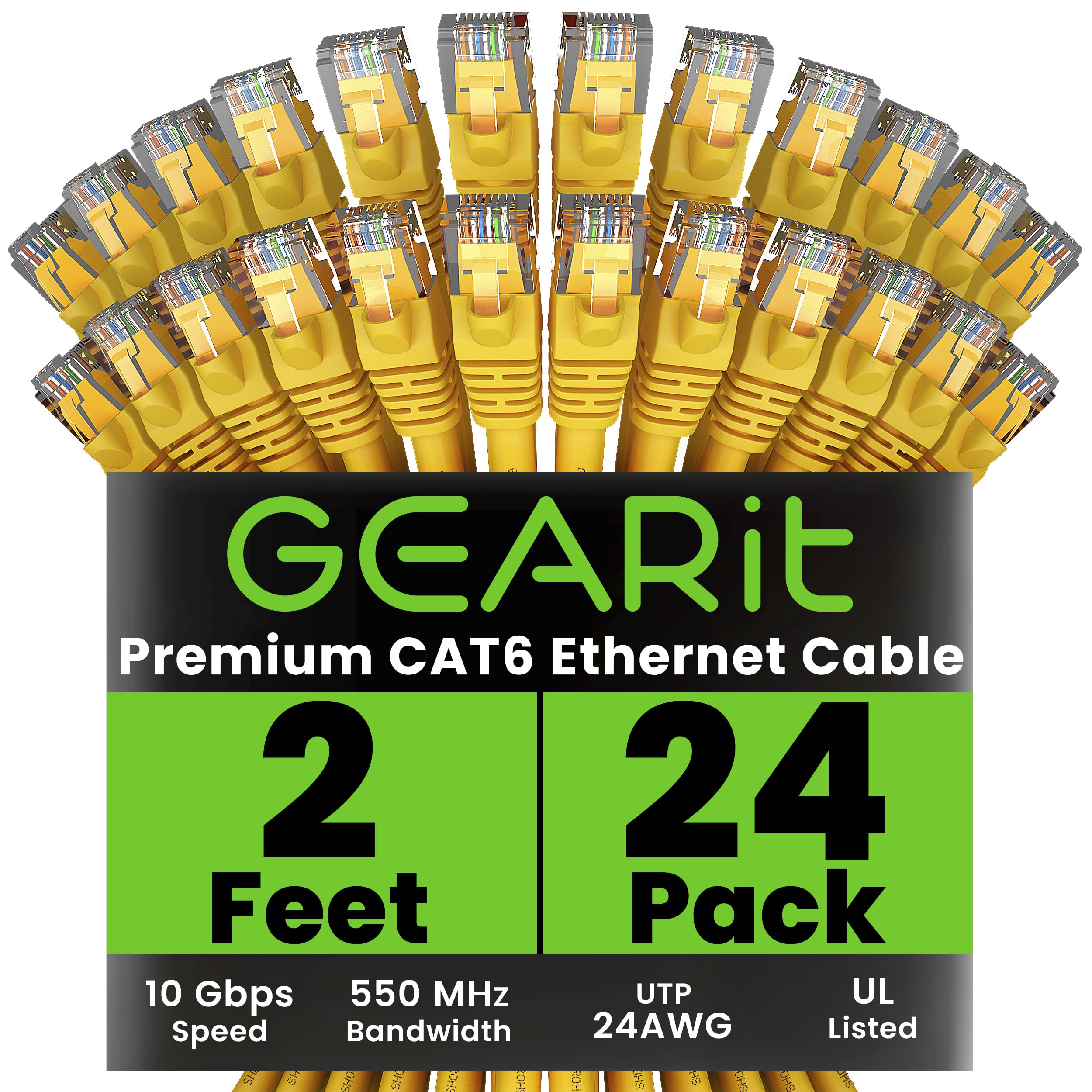 GearIT Cable Ethernet Cat 6 de 2 pies (paquete de 24) – Cable de conexión Cat6, cable de conexión Cat 6, cable Cat6, cable Cat 6,