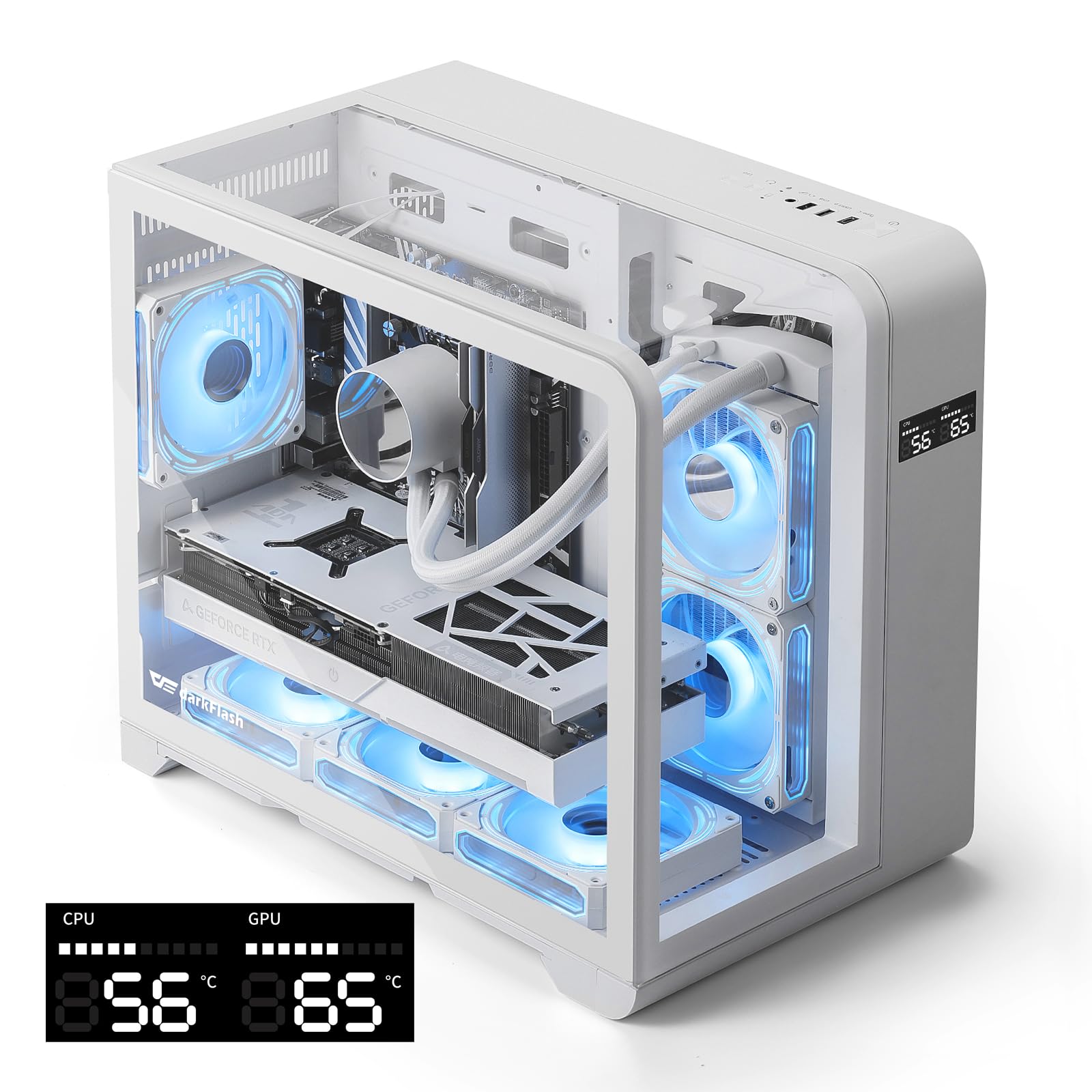 darkFlash ATX Mid-Tower – Funda de PC con pantalla, vidrio de tres lados, vista completa curva, carcasa de PC para juegos dual, 4
