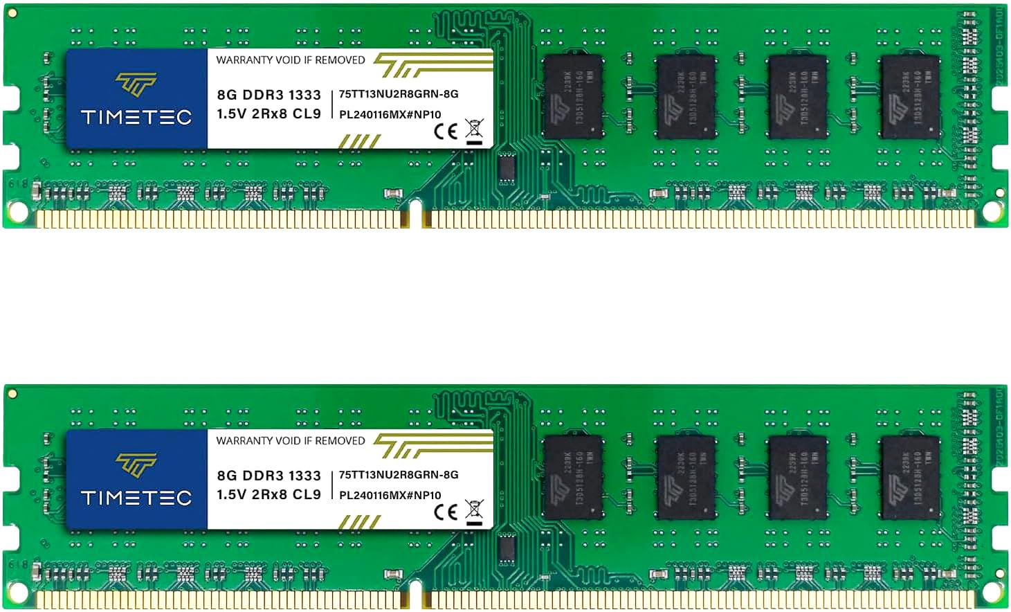 Timetec Kit de 16 GB (2 x 8 GB) DDR3 1333 MHz PC3-10600 sin ECC sin búfer 1.5V CL9 2Rx8 de doble rango 240 pines UDIMM PC de escri