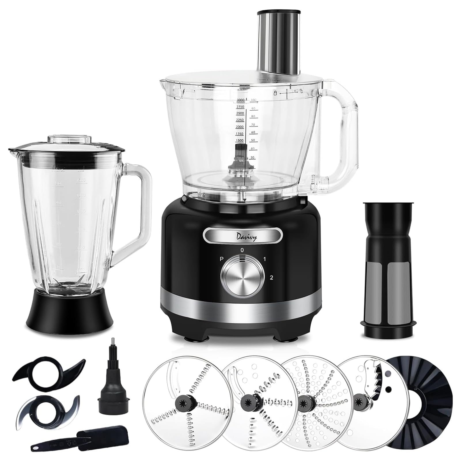 Davivy Combo de procesador de alimentos de 16 tazas y filtro de licuadora de vidrio de 6 tazas (50 onzas), procesador multifunción