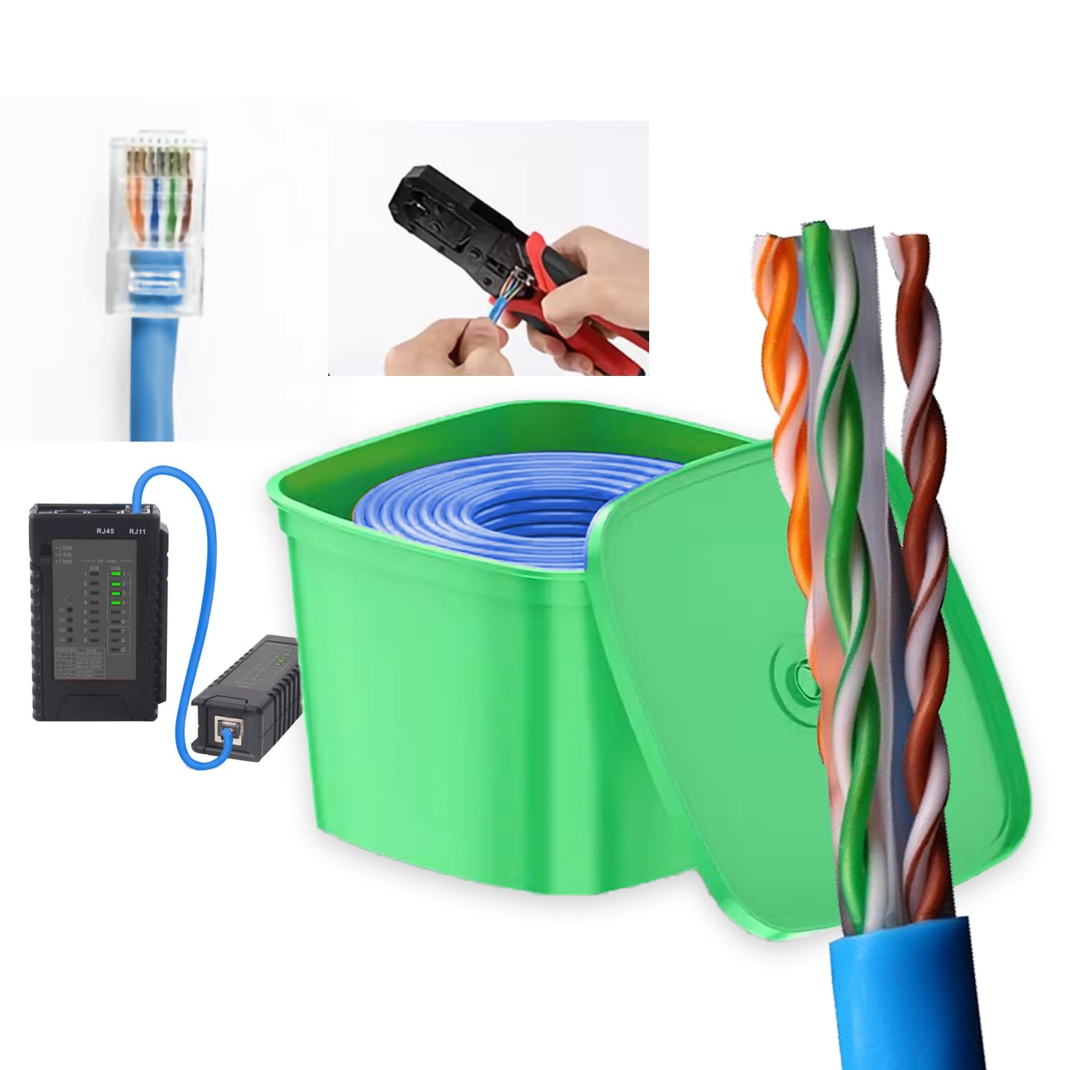 Cable Ethernet CCA Cat6 de 300 pies a granel con kit de crimpadora de nivel de entrada, 23 AWG UTP para bricolaje inteligente hoga