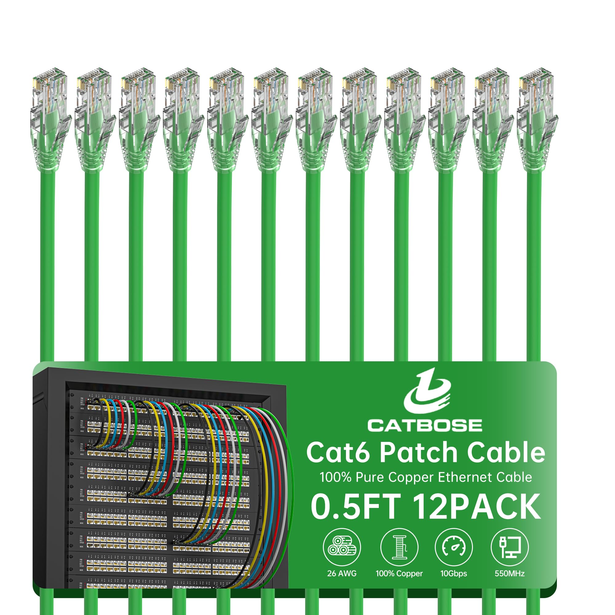 Cable de conexión Cat6 de 0.5 pies (paquete de 12), cable de conexión de cobre puro sólido, cable Ethernet Cat 6, red UTP, cable d