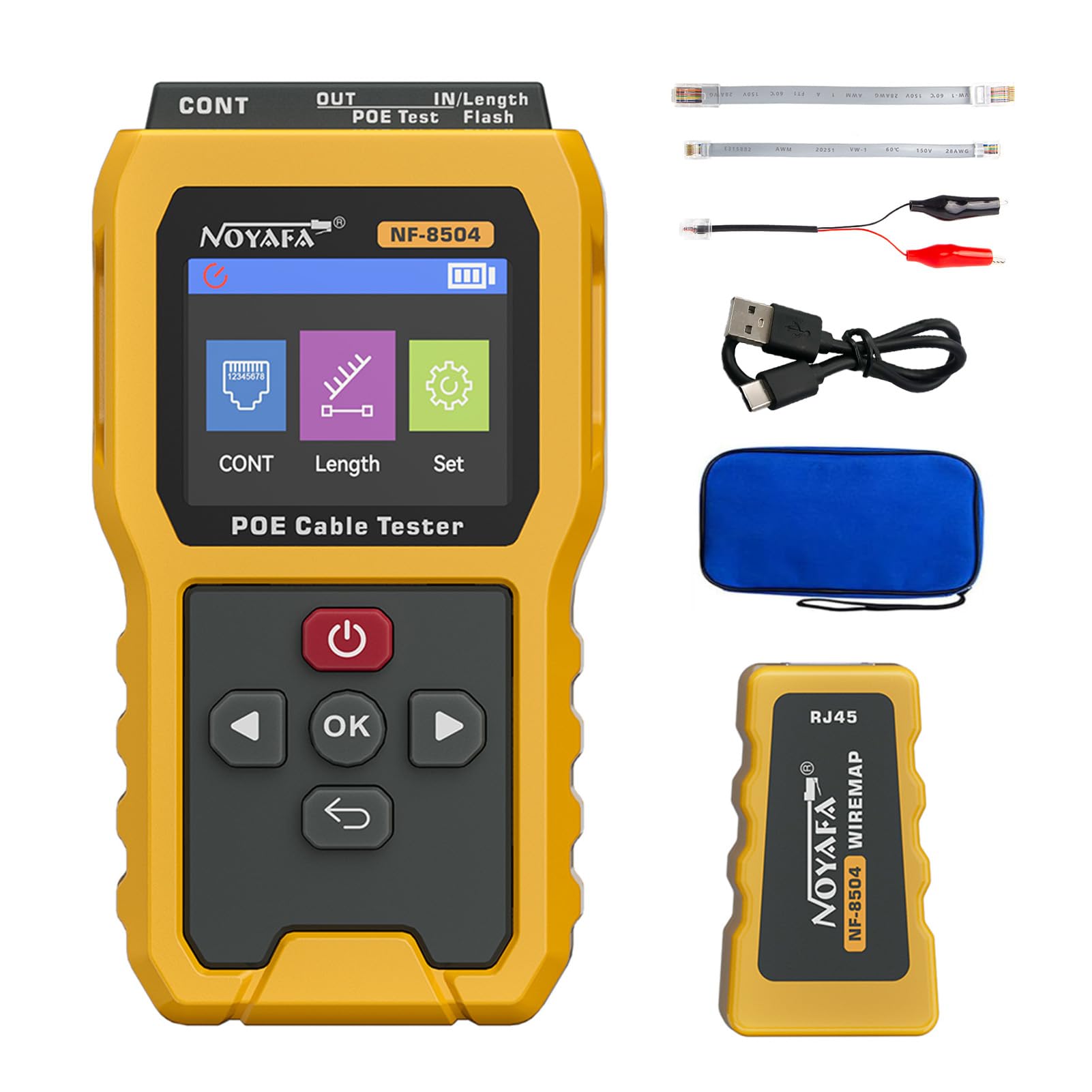 Probador de cable PoE compatible con IEEE 802.3af/at/bt, probador de cable de red con flash de puerto, medición de longitud de cab