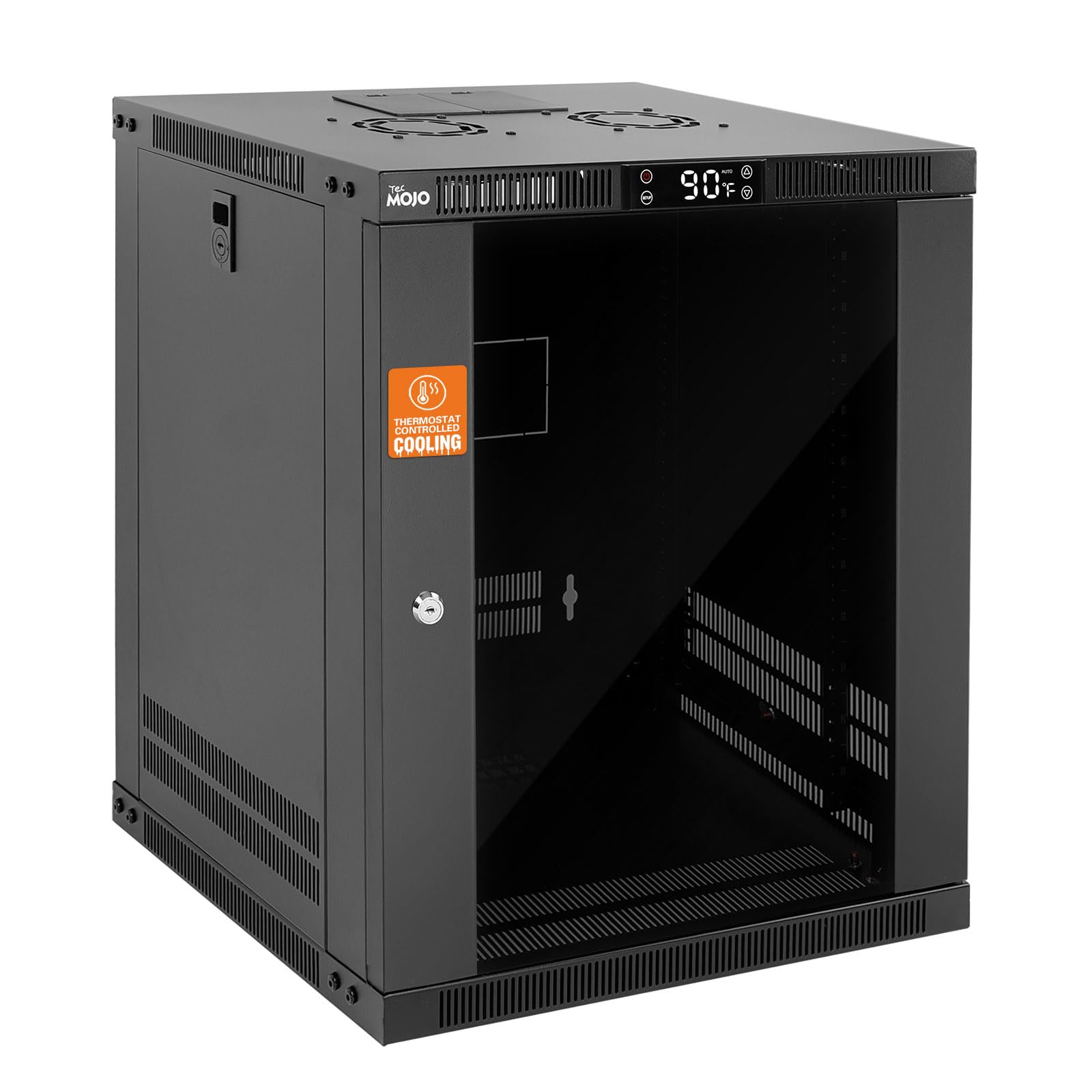 Tecmojo Estante de montaje en pared de 12U con termostato, gabinete cerrado de servidor de 17.7 pulgadas de profundidad con 2 vent