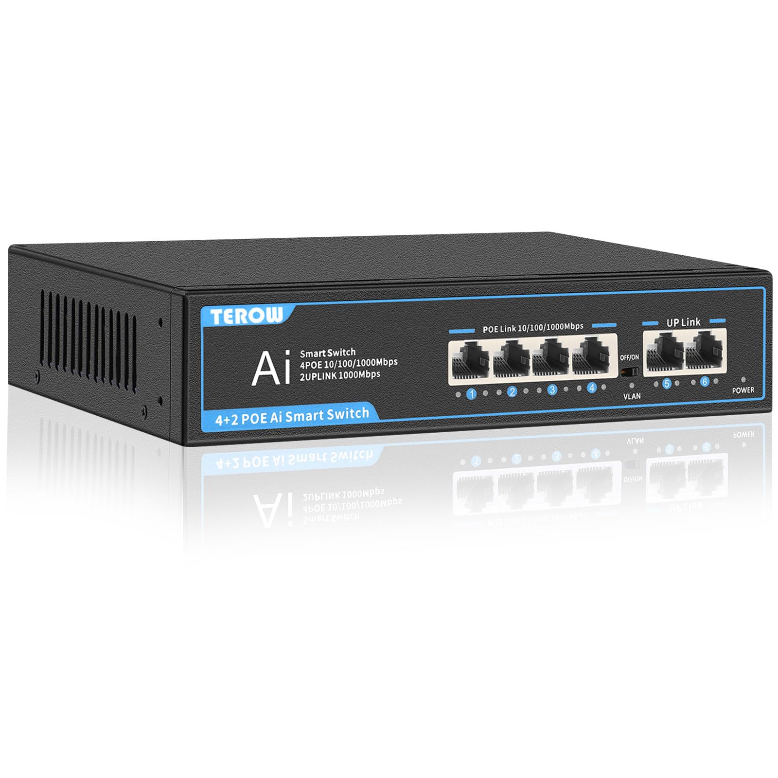 Switch de red Gigabit POE de 6 puertos: con 4 puertos PoE y 2 puertos de enlace ascendente mejorados, compatible con 802.3af/at, P