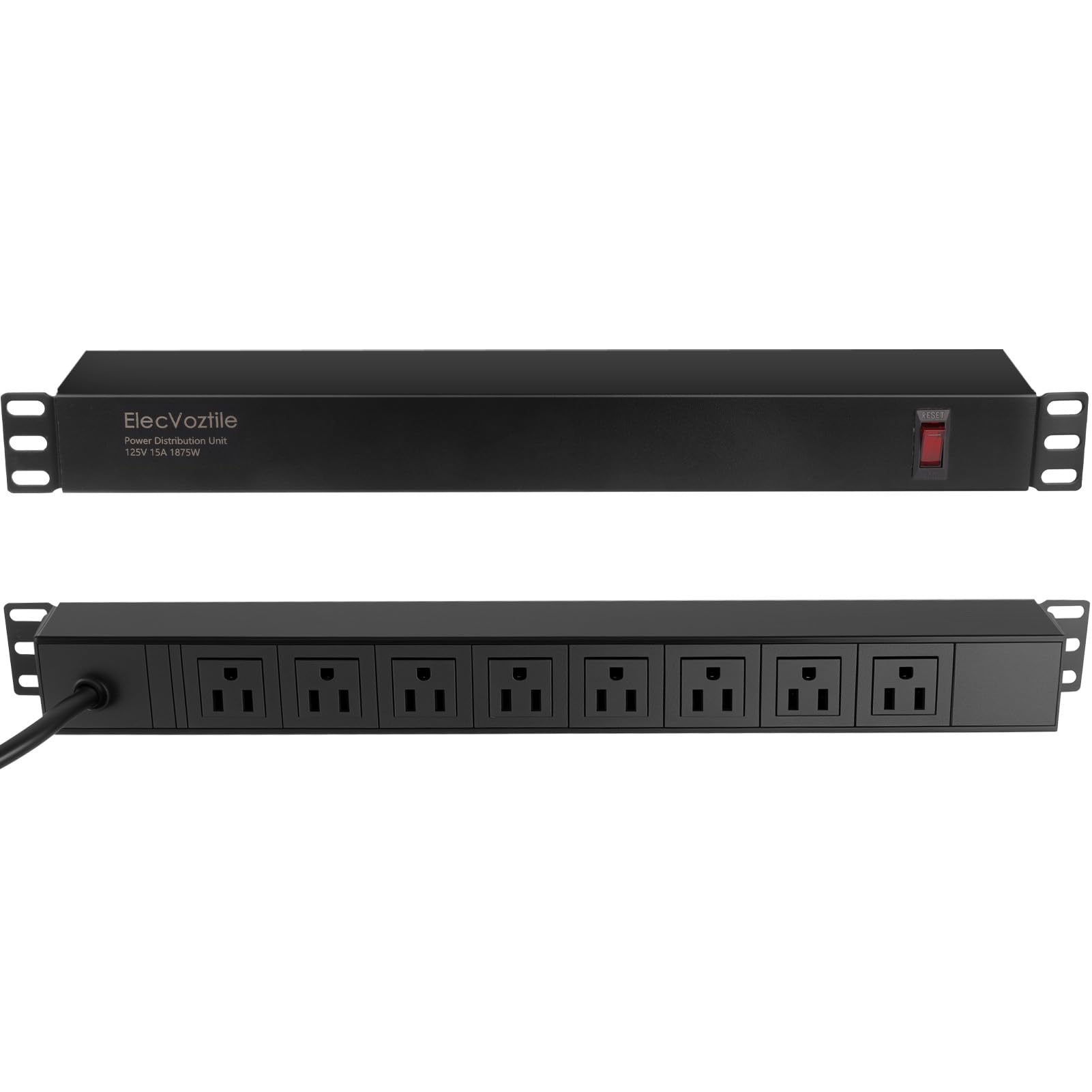 BTU Regleta protectora contra sobretensiones para montaje en bastidor, 8 salidas en ángulo recto de gran espacio, regleta de alime