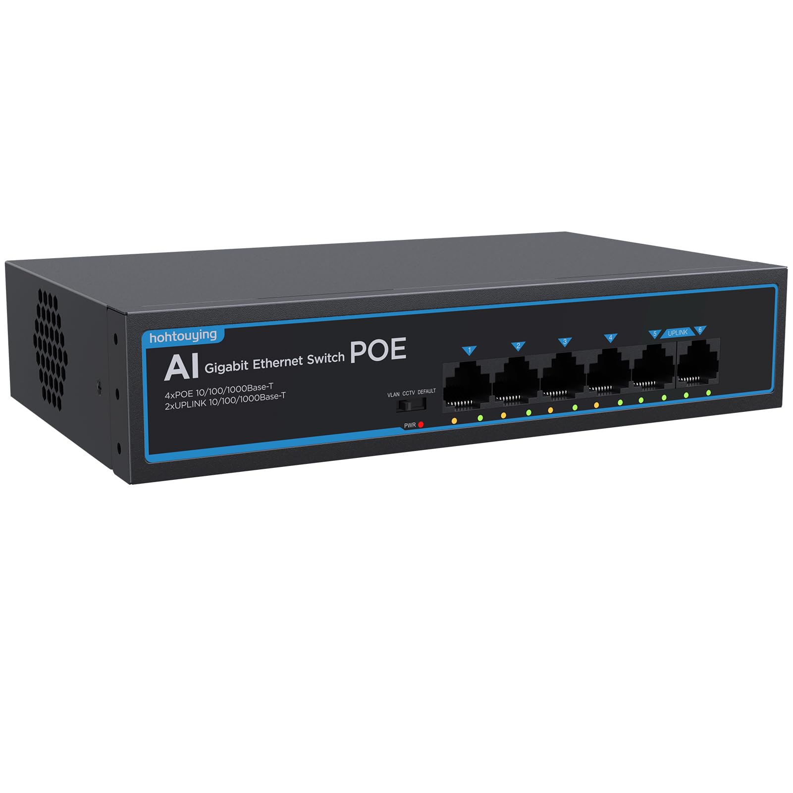 4 Port Gigabit PoE Switch with 2 Gigabit Uplink, 1000Mbps, 802.3af/at, 65W Built-in Power, Vlan, Unmanaged Metal Plug and Play, Id