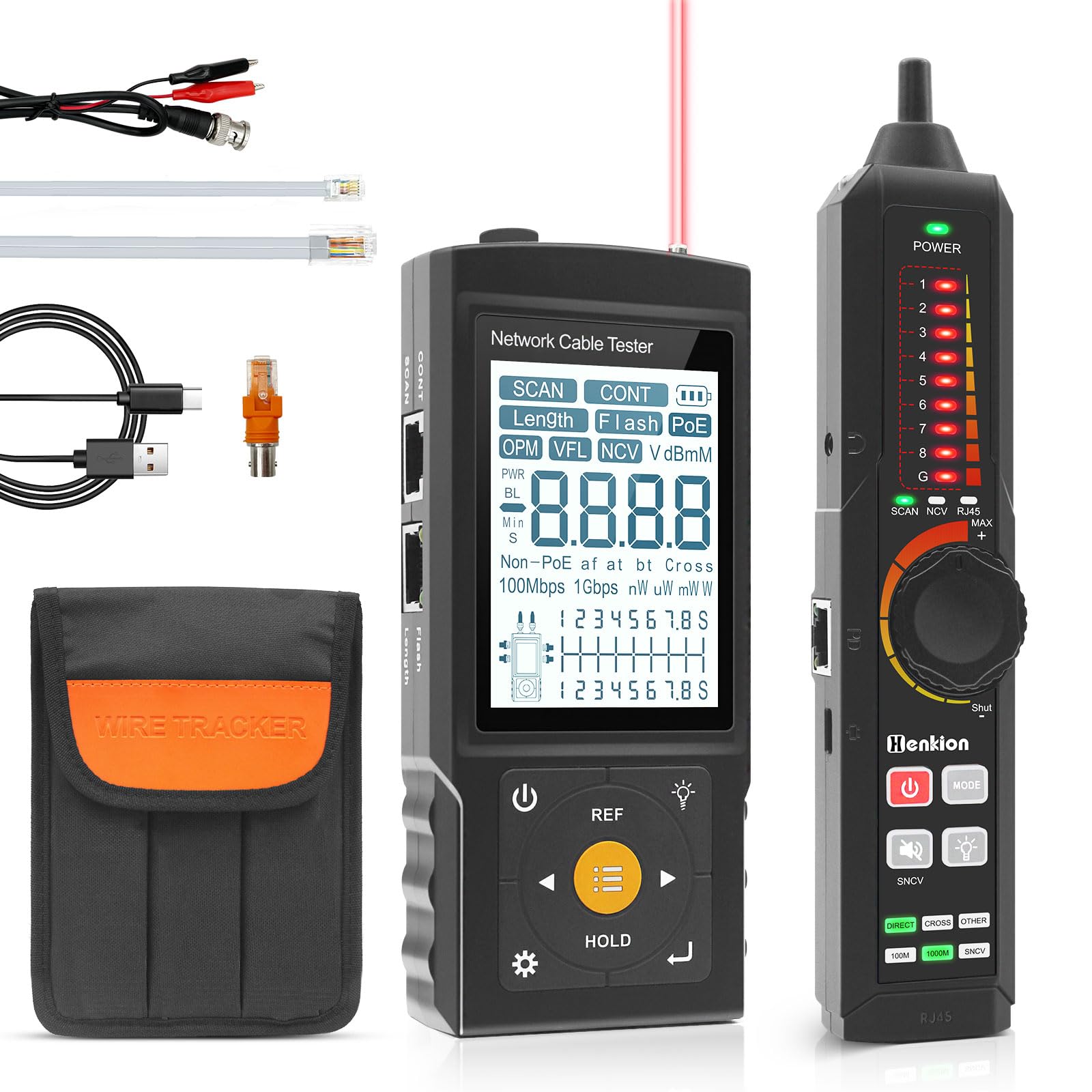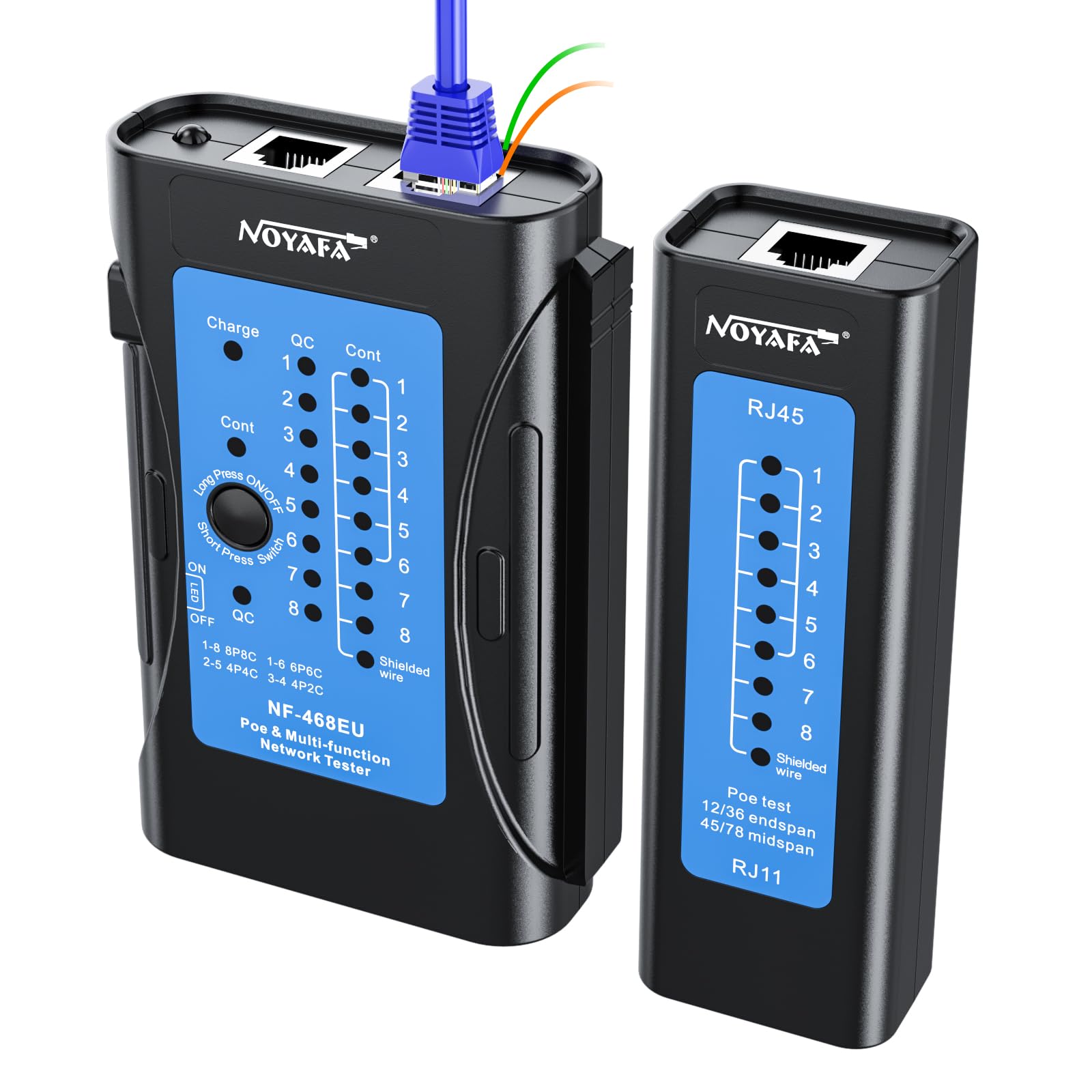 Probador de cable de red NF-468CS, RJ45/RJ11/CAT5/CAT6/CAT5E/CAT6A/CAT7/POE Test UTP/STP Probador de continuidad de cable Ethernet