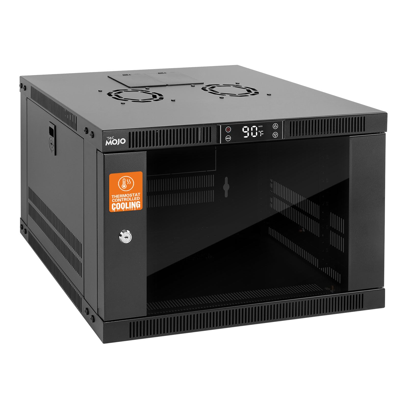 Tecmojo Rack de montaje en pared 6U con termostato, gabinete cerrado de servidor de 17.7 pulgadas de profundidad con 2 ventiladore