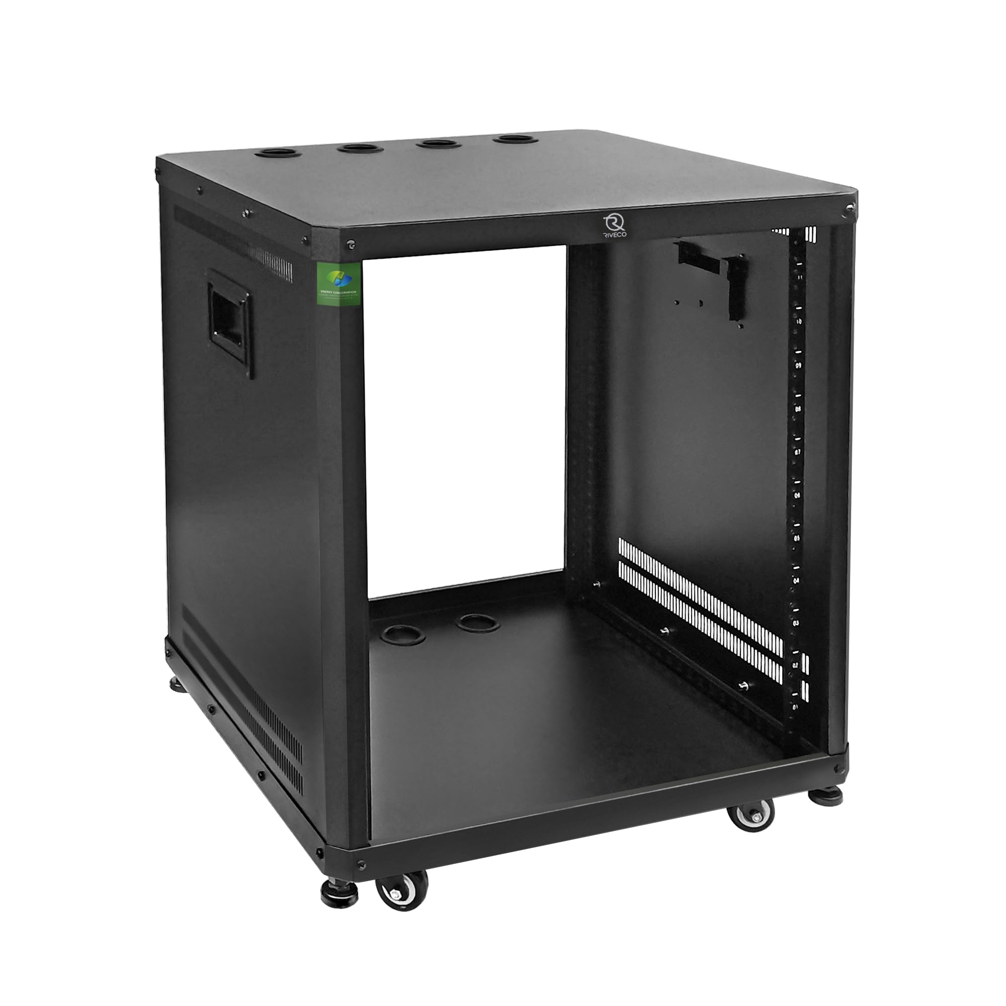 RIVECO Rack de servidores de marco abierto de 18U con ruedas de freno, resistente 4 postes, montaje rápido, red de rack de 19 pulg