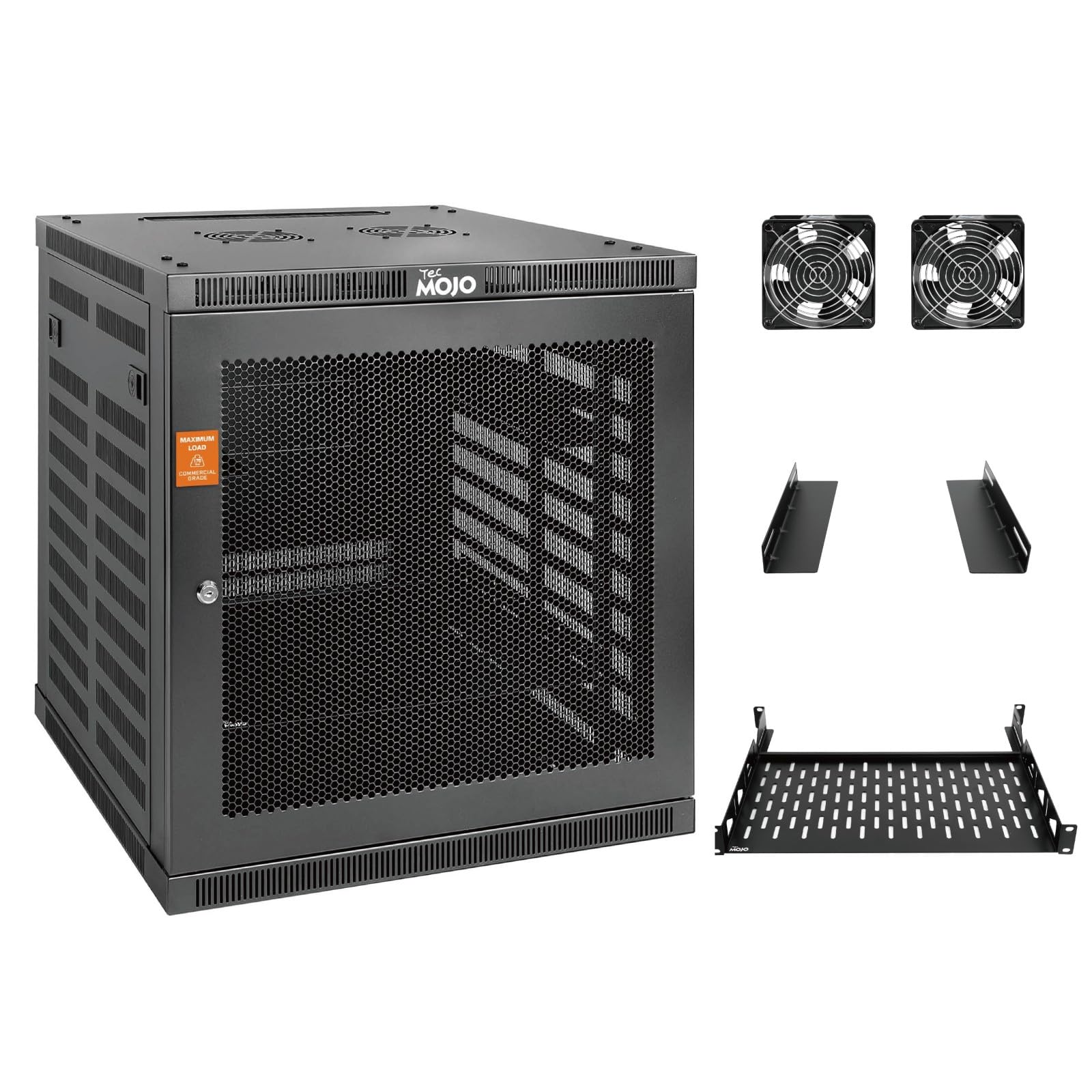 Tecmojo Elite Collection – Gabinete de servidor de montaje en pared de 12U, gabinete de red de TI, paneles laterales y puertas de