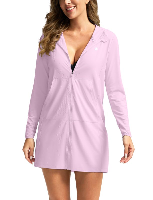 Chaqueta larga con capucha y protección solar FPU 50+ para mujer, salida de baño ligera con FPS para la playa
