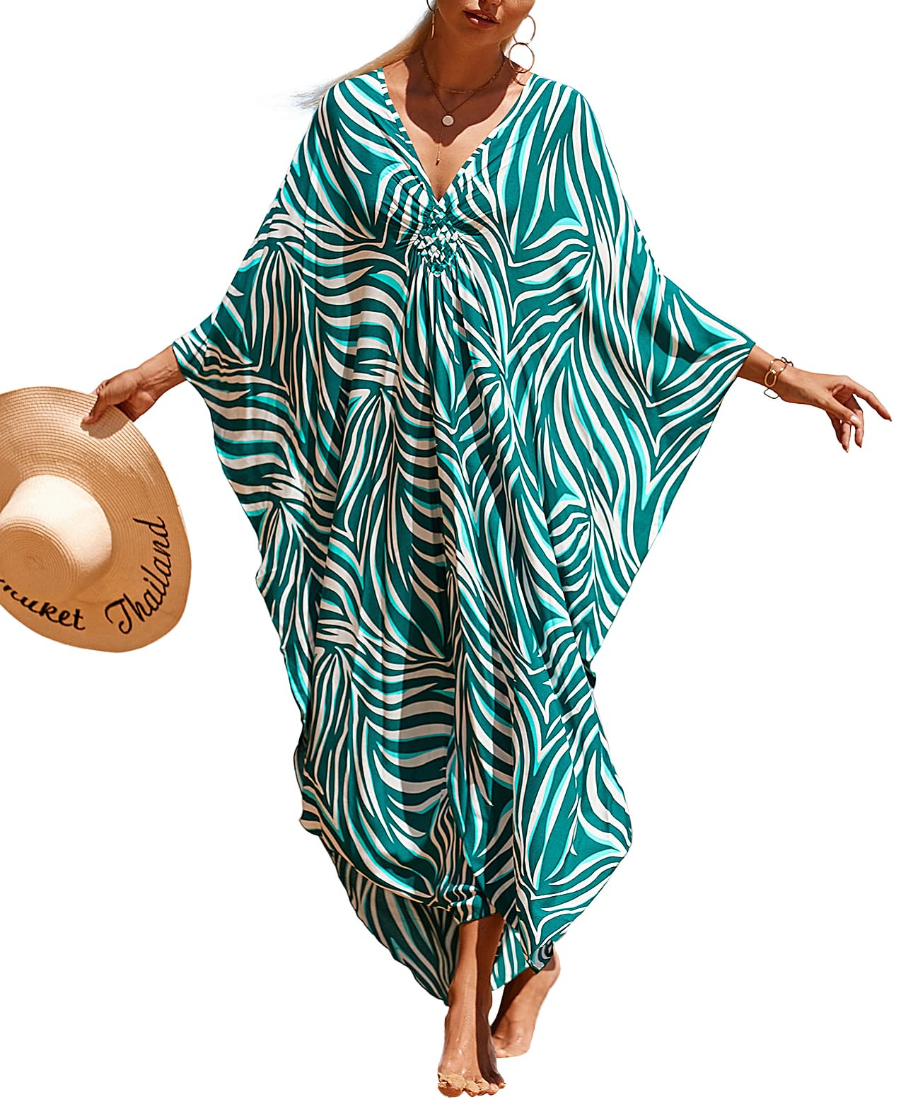 MAKABO Vestidos caftán para mujer, cuello en V, bohemio, tropical, hawaiano, caftán, maxi vestido de playa