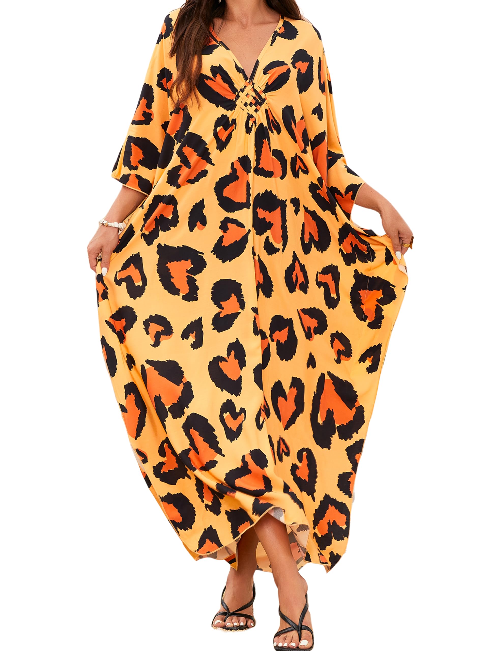 Vestidos de caftán con estampado animal para mujer, talla grande, traje de baño de verano, vestido de playa