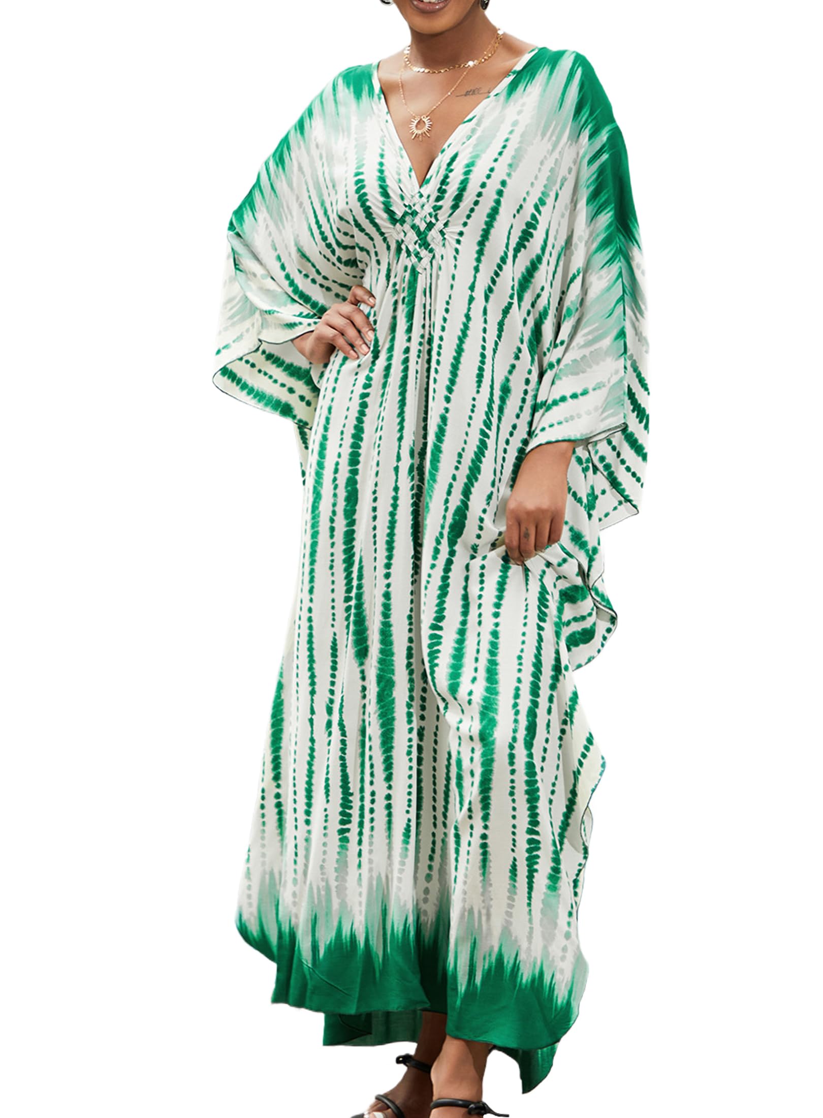 Vestidos de caftán talla grande con cuello en V para mujer, salida de baño, teñido anudado, mangas de murciélago, vestido de caftá