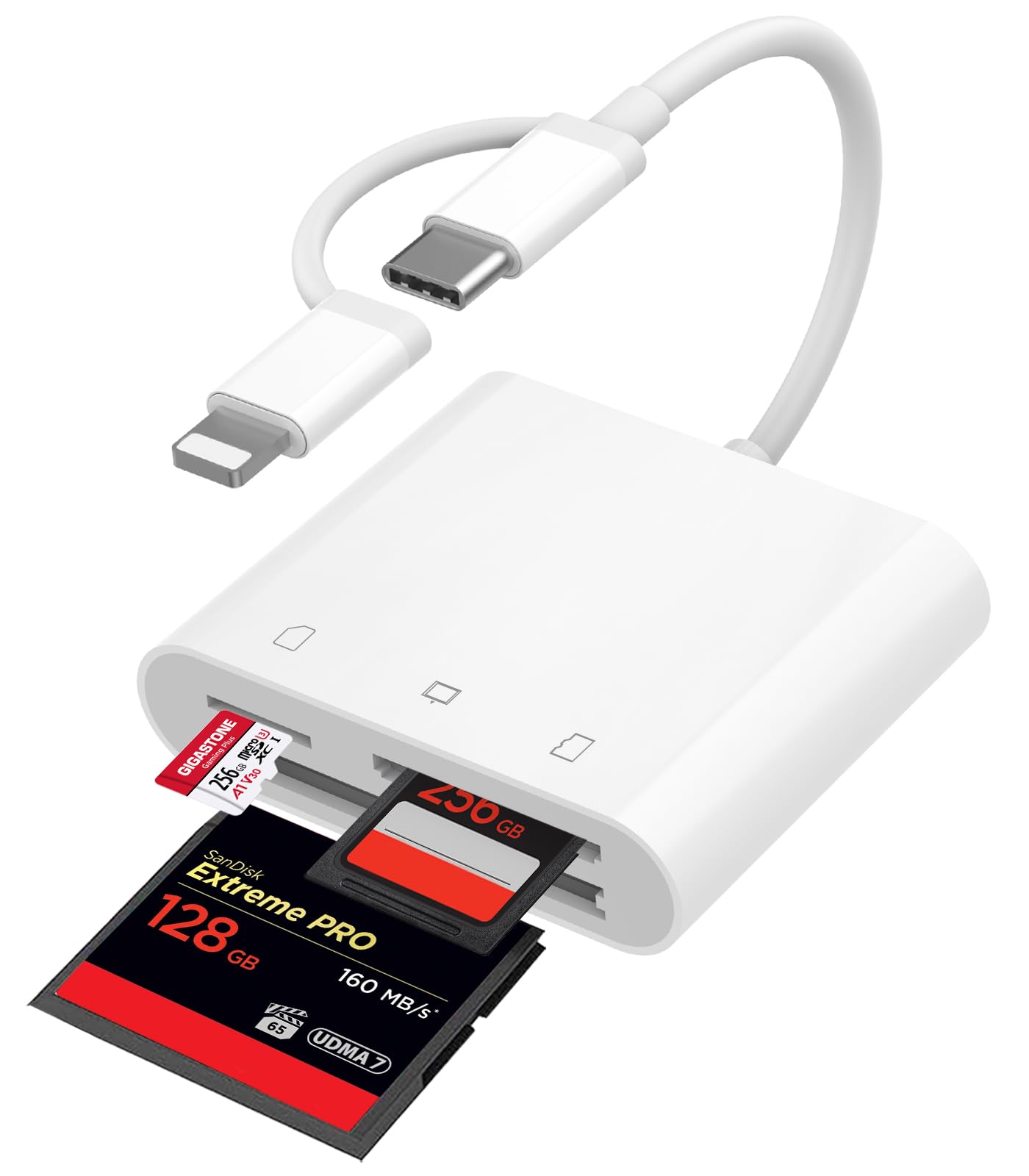Lector de tarjetas SD para iPhone iPad, adaptador Lightning, doble ranura, compatible con SD/SDHC/SDXC/MicroSD/MicroSDXC/MicroSDHC