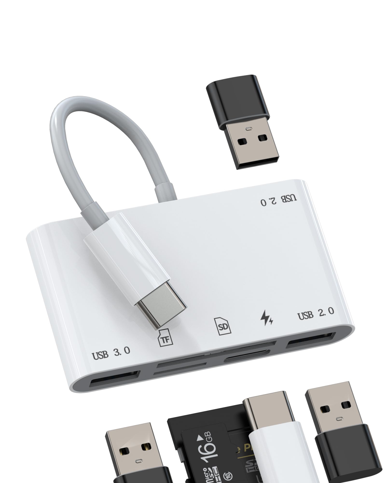 AP439 Adaptador Lightning a USB 5 en 1 – Lector de tarjetas SD/TF para iPhone, iPad, MacBook, Samsung, Android – USB 3.0, visor de