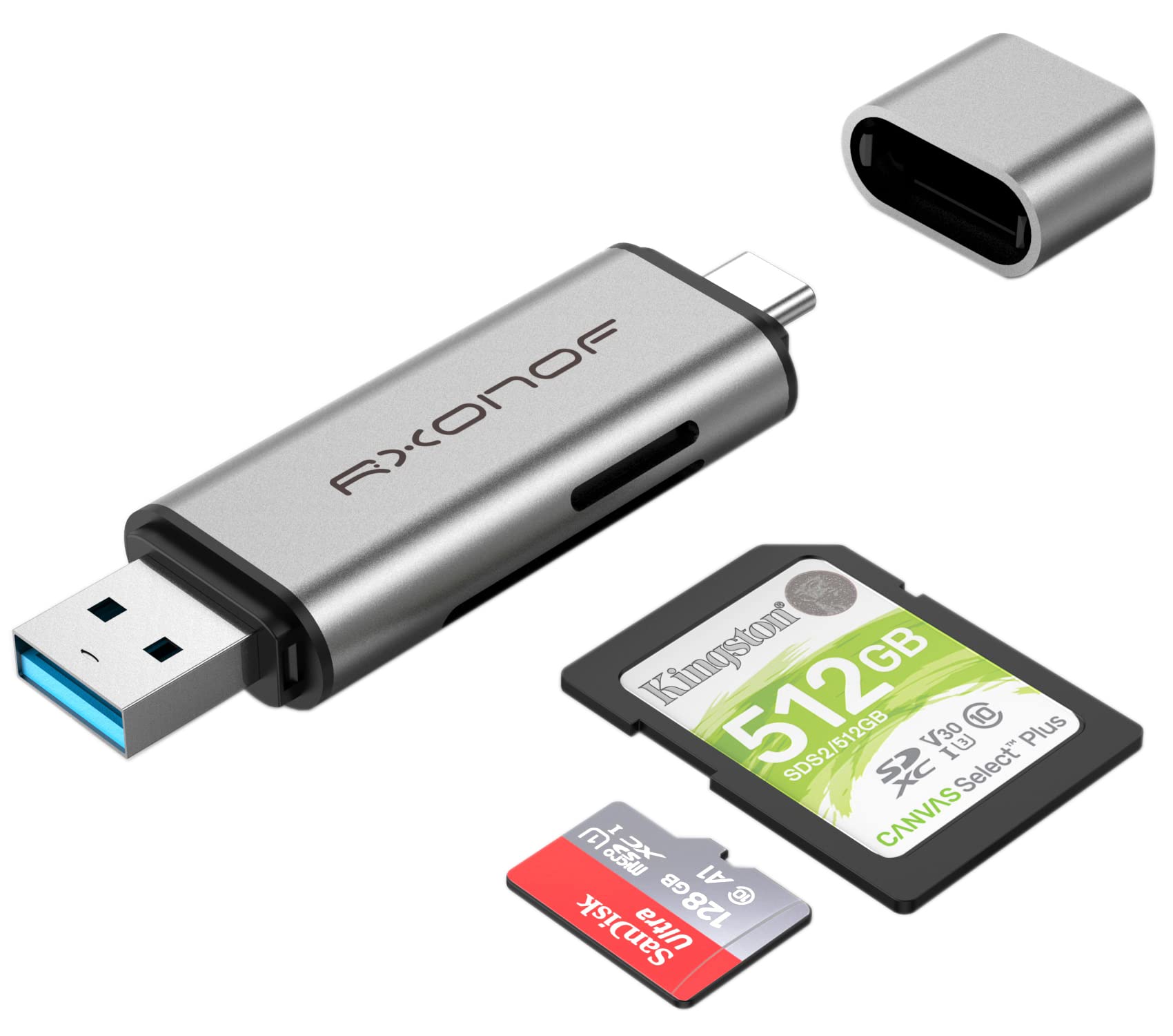 Lector de tarjetas SD, Rxonof USB 3.0 y USB C lector de tarjetas de memoria 2 en 1 con conectores duales para tarjetas SDXC, SDHC,