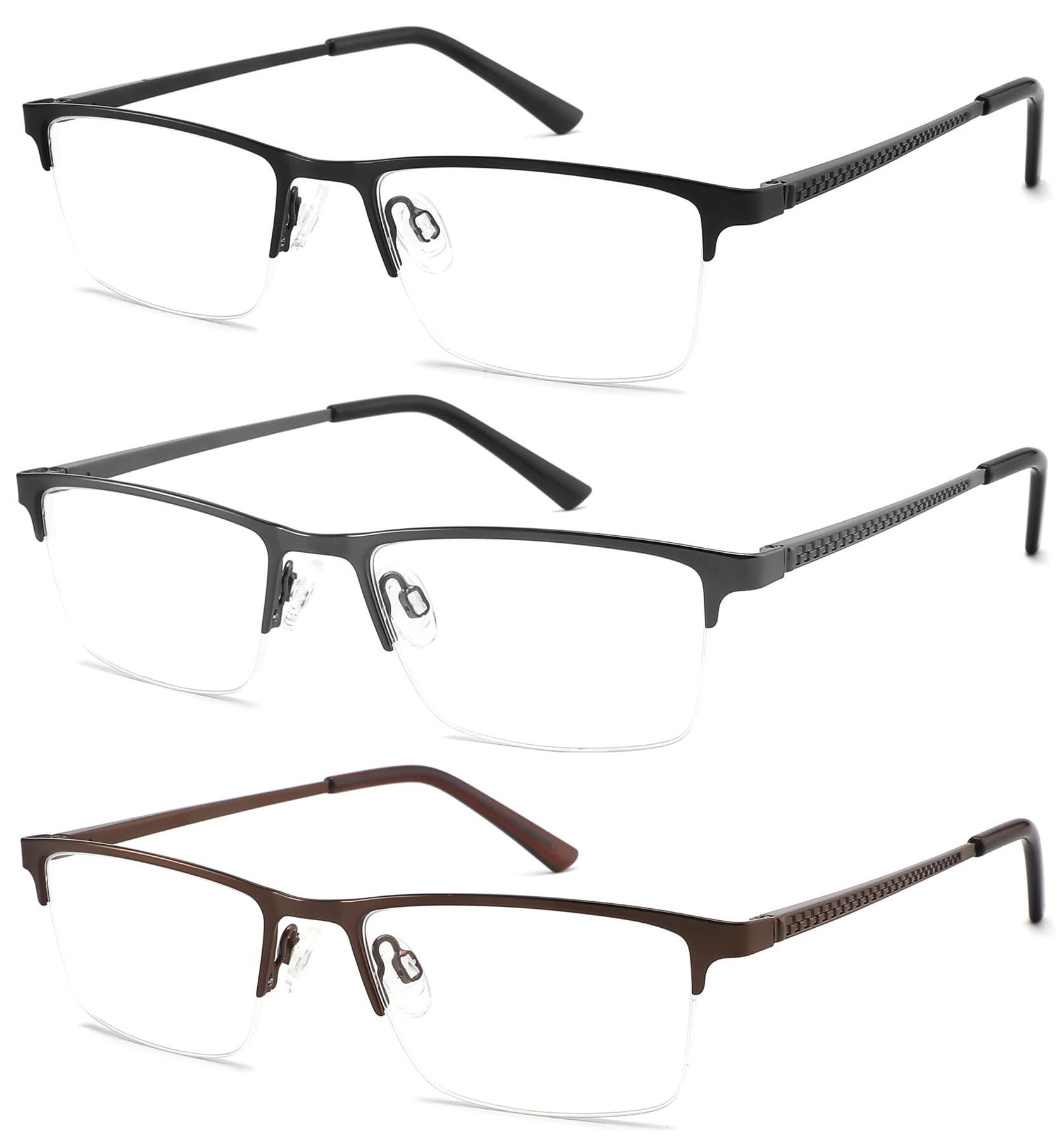 Paquete de 3 lentes de lectura para hombre, antiluz azul, medio marco, lectores de moda, antifatiga/UV