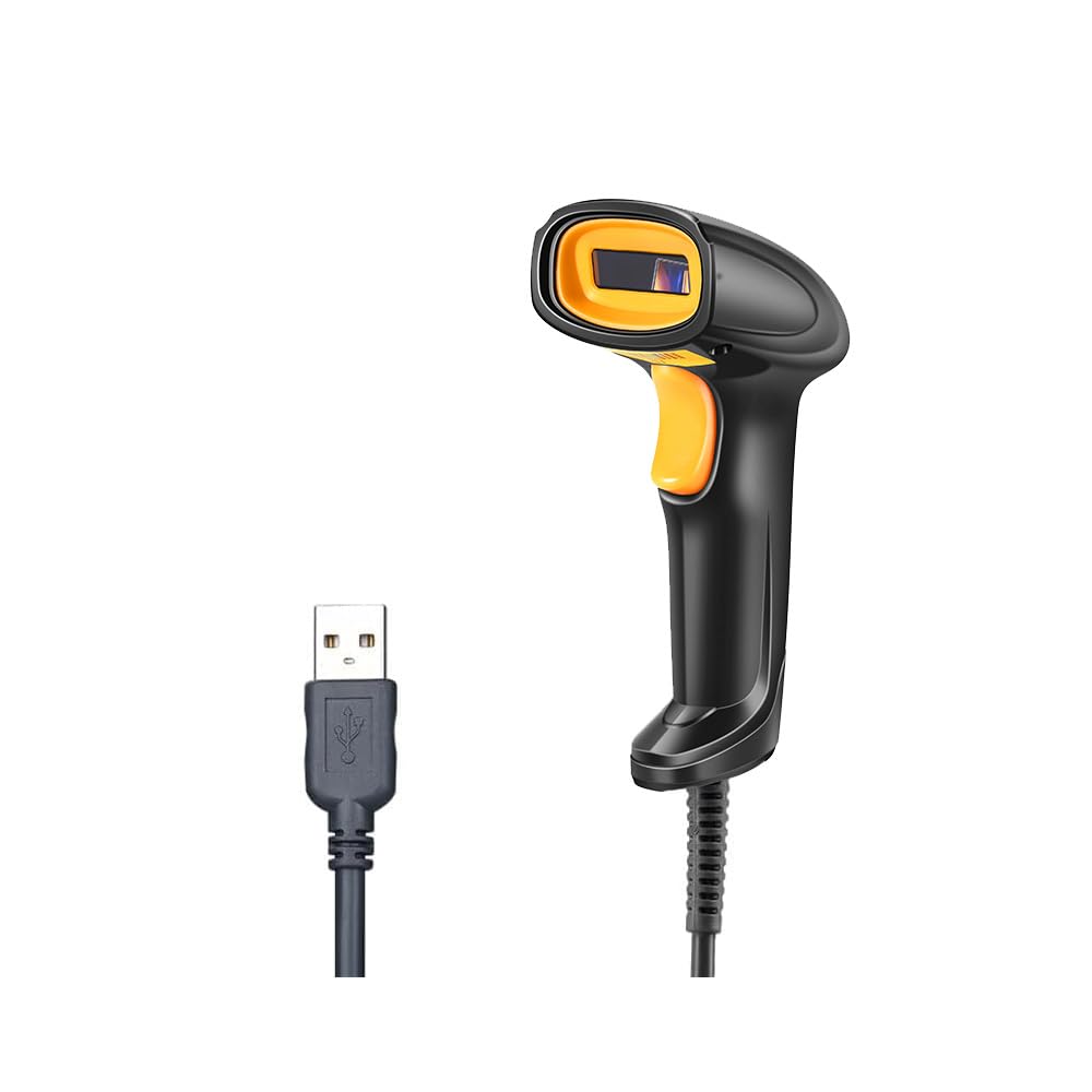 Escáner de código de barras con cable USB – Escáner láser 1D Plug & Play para venta al por menor/almacén, mini lector de código de