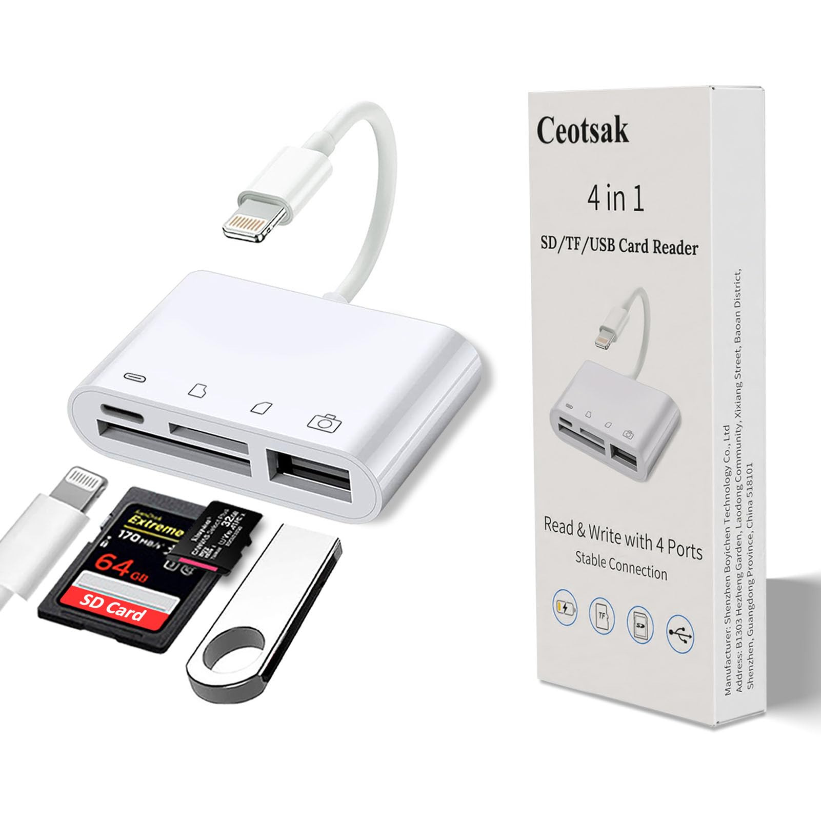 Lector de tarjetas SD para iPhone -TypeC+Lightning+USB triple puerto SD/TF lector de tarjetas de memoria de transferencia de cámar