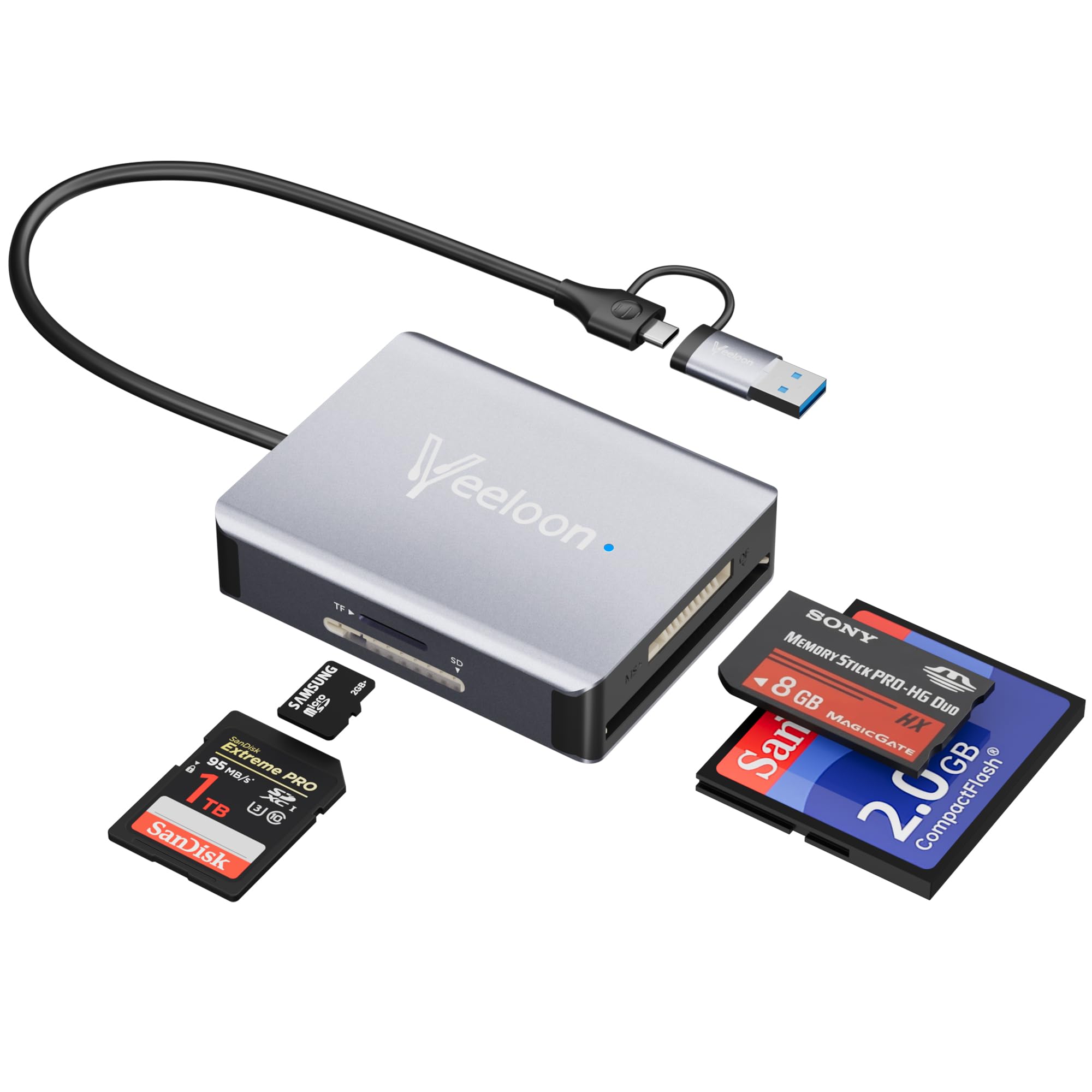 Lector de tarjetas USB C USB 3.0 con concentrador USB, 8 en 2 tarjetas XD/SD/TF/CF/MS, adaptador Sony Memory Stick Pro Duo, lector