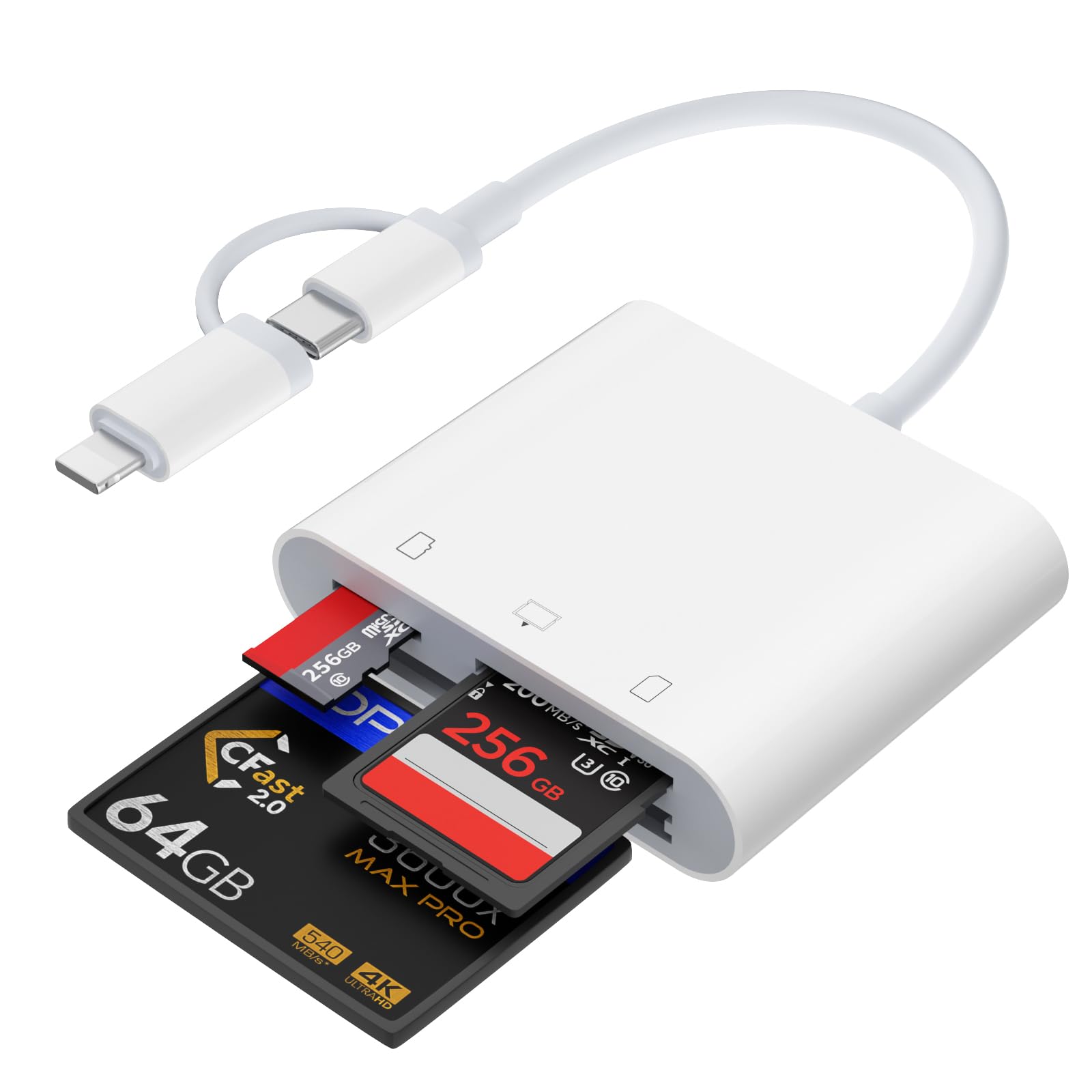 Lector de tarjetas Lightning y USB C SD para iPhone, iPad, Mac, teléfono Android, portátil, lector de tarjetas de memoria 3 en 2,