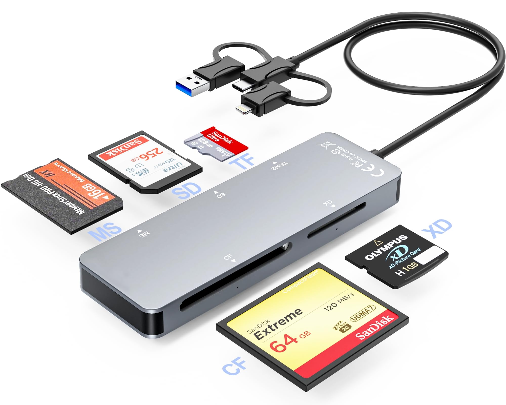 Adaptador Memory Stick Pro Duo para iPhone/Android, lector de tarjetas XD/TF/MS/CF/SD para PC/USB C/USB A/Lightning, lector de tar