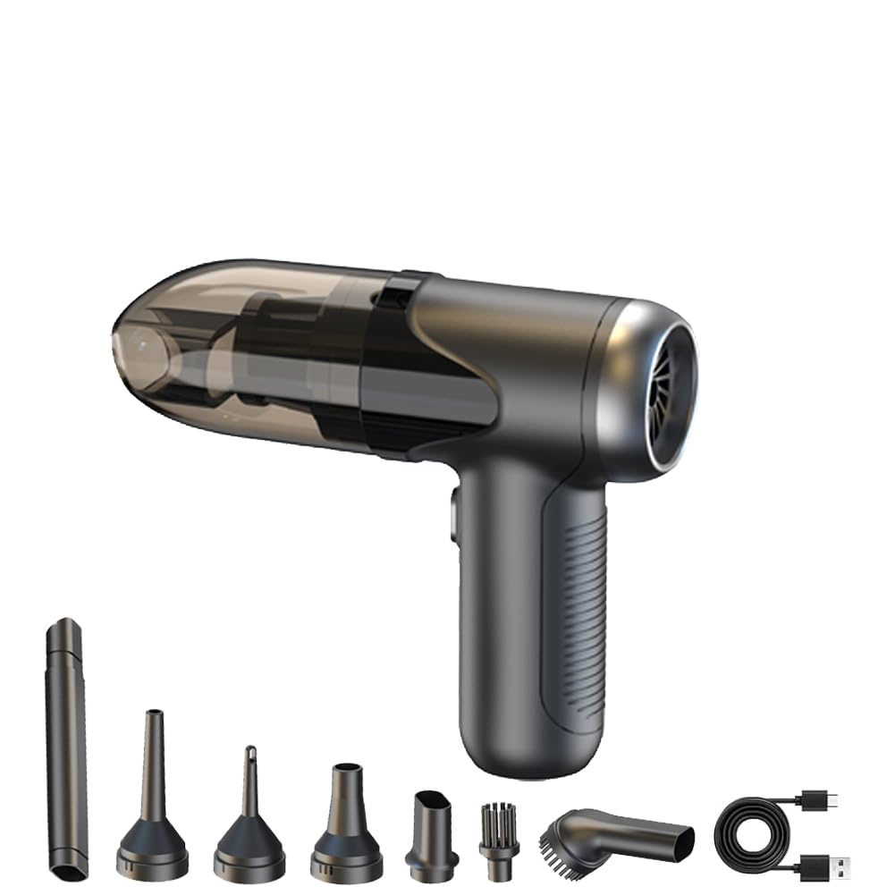 Aspiradora para automóvil, 5 en 1, portátil, mini aspiradora inalámbrica con potente succión de 23,000 Pa, 10 accesorios, plegable