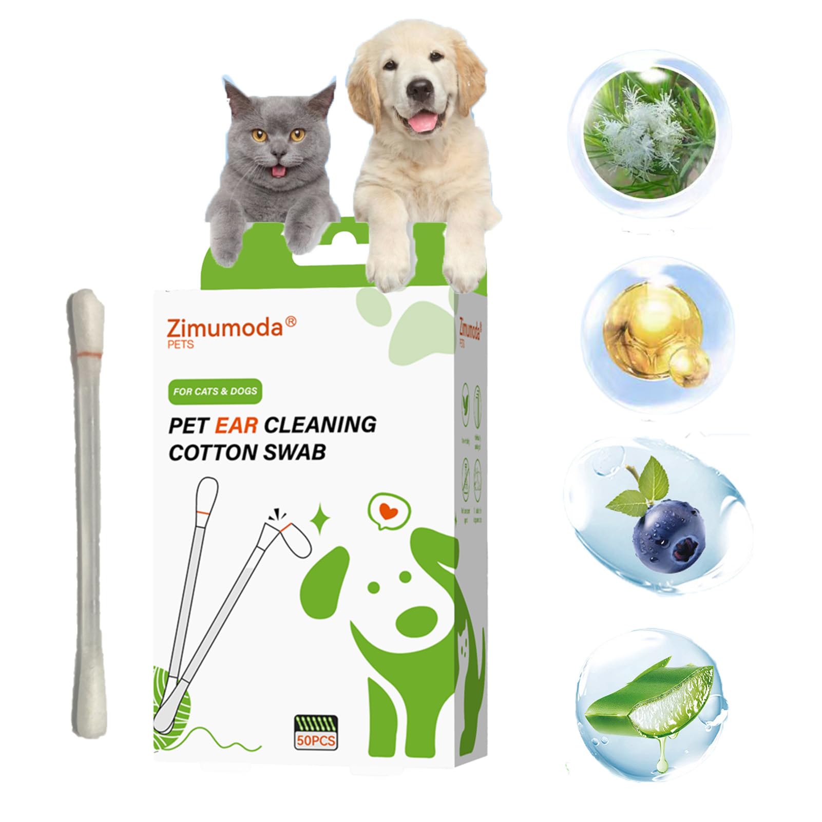 50 hisopos de algodón 2 en 1 para limpieza de oídos de mascotas para perros y gatos – Limpiador de oídos con aceite esencial – Eli