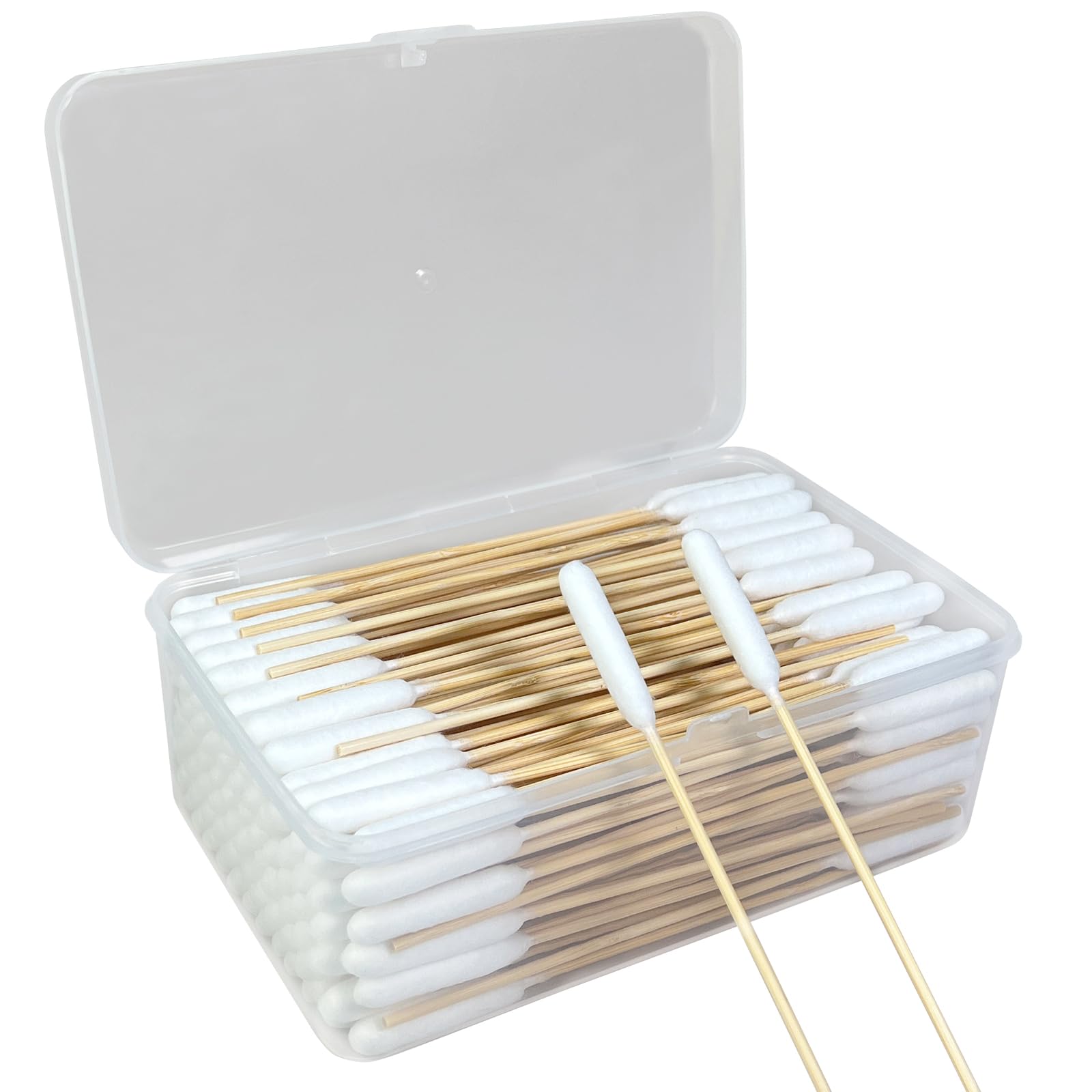 Zhehao 300 hisopos de algodón grandes de 8 pulgadas con mango de bambú, aplicadores de punta de algodón extra largos de gran tamañ