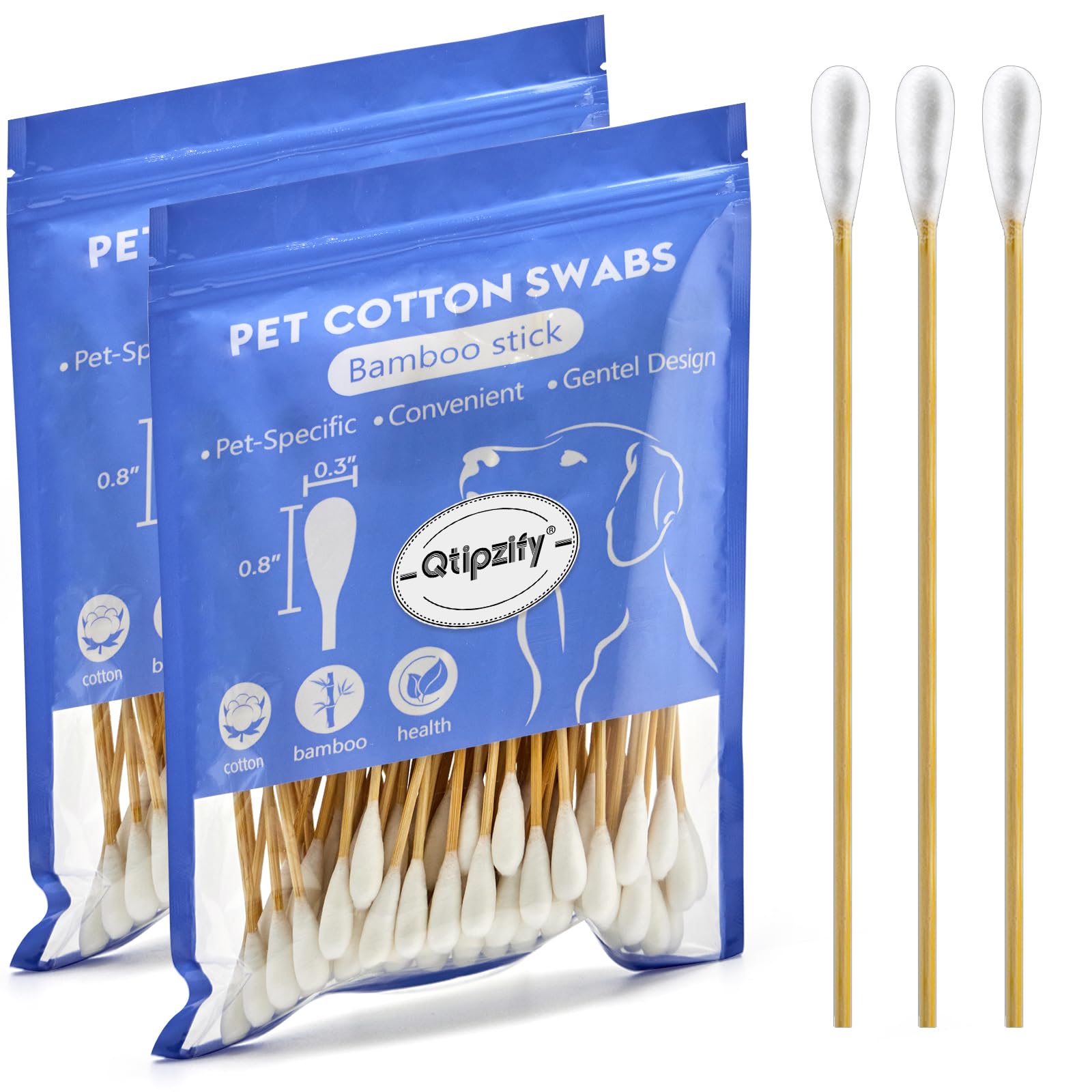 100 hisopos profesionales de limpieza de orejas de perro, hisopos de algodón grandes de 6 pulgadas, bastoncillos de algodón de bam
