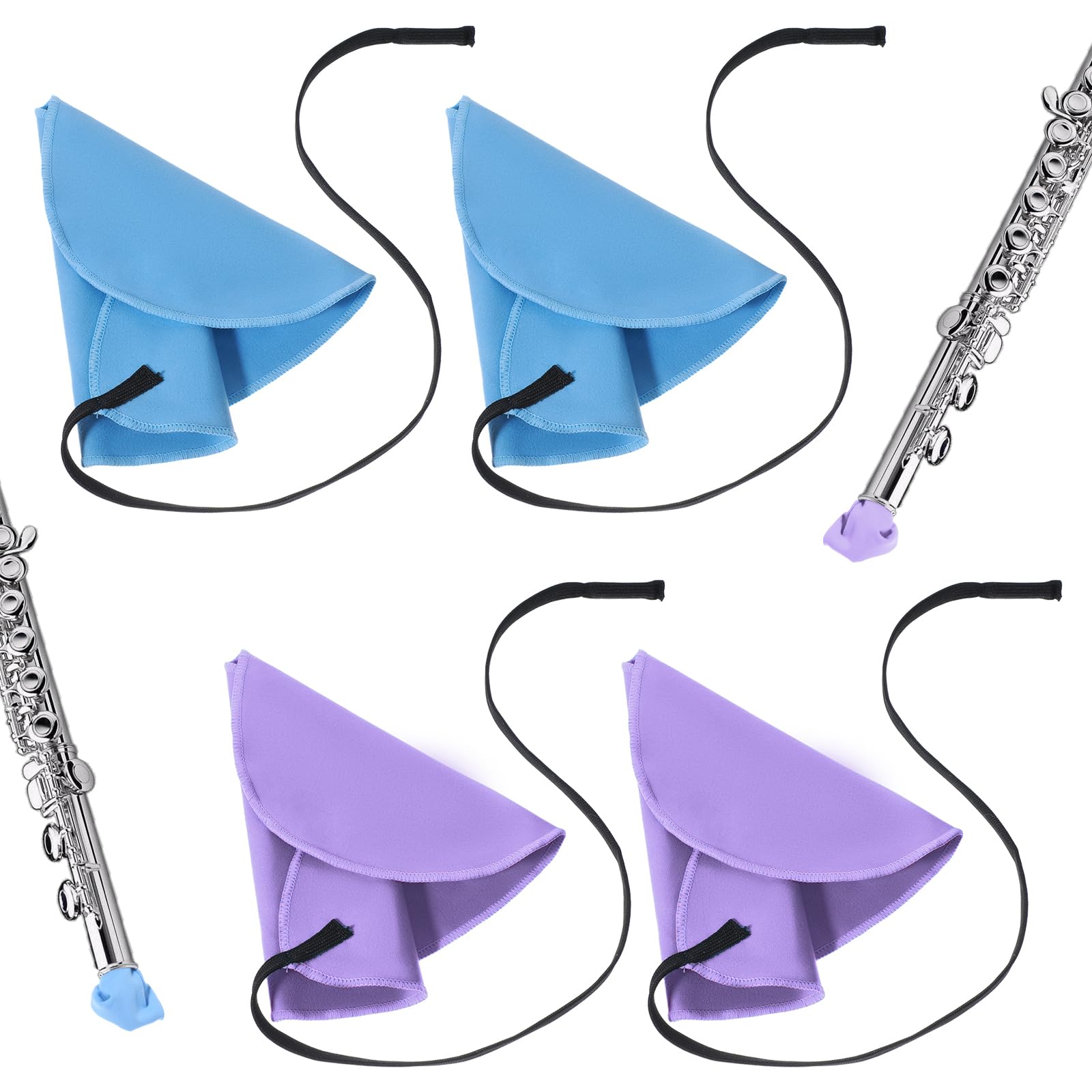 cobee 4 piezas de paño de limpieza para clarinete hisopo de clarinete, azul y morado, paño de limpieza para clarinete con cuerda p
