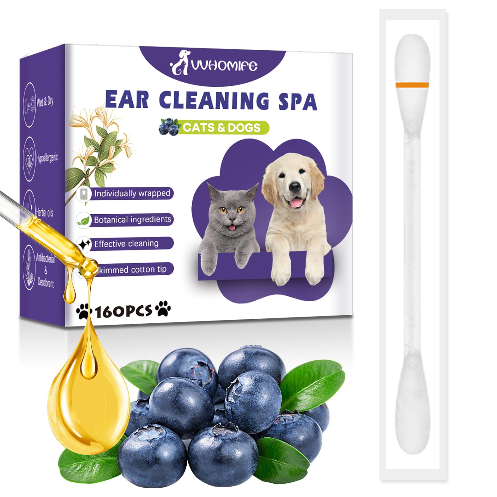 Hisopos limpiadores de oídos para mascotas 2 en 1, limpiador de oídos natural y suave para perros y gatos, elimina la cera, la suc