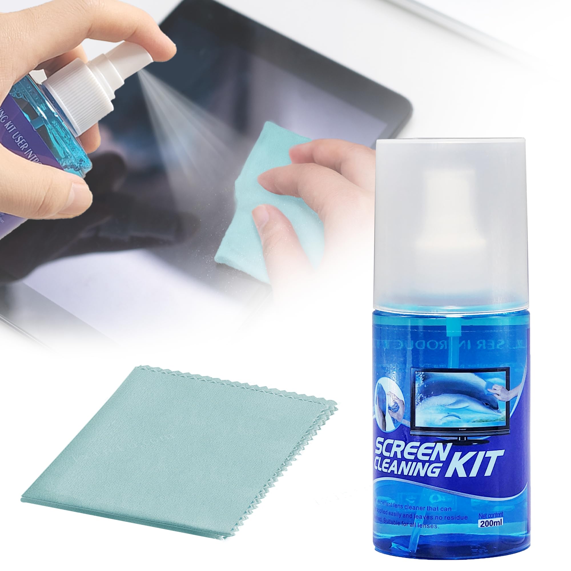 Spray limpiador de pantalla de 7 onzas, kit de limpieza de pantalla de laptop, limpiador electrónico, incluye 1 aerosol y 1 paño d