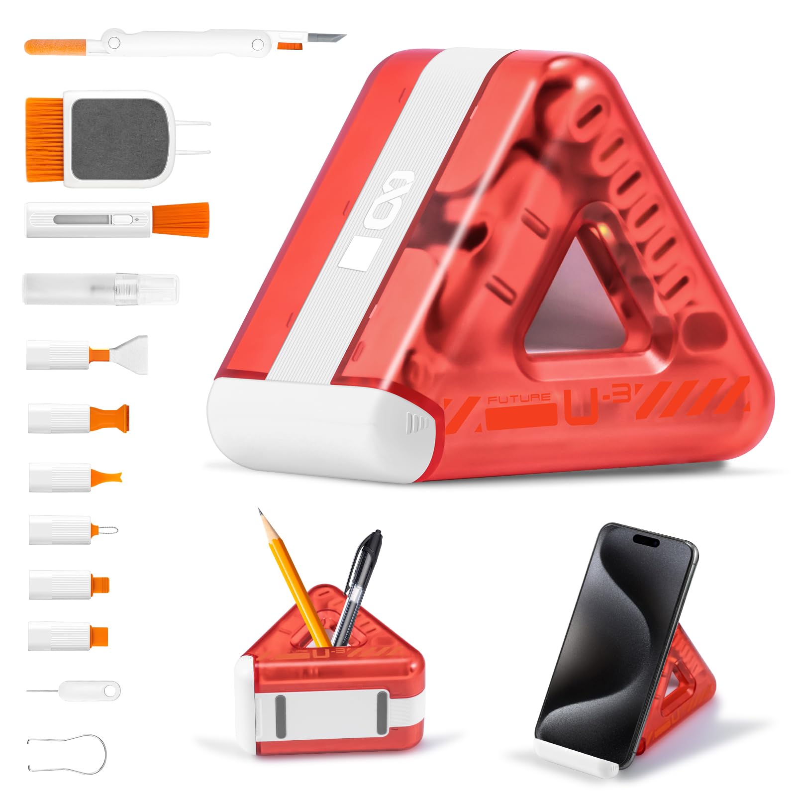 Generic Cepillo de limpieza multifuncional triangular para AirPods y teclados, incluye kit de limpieza profunda para teléfono, lim