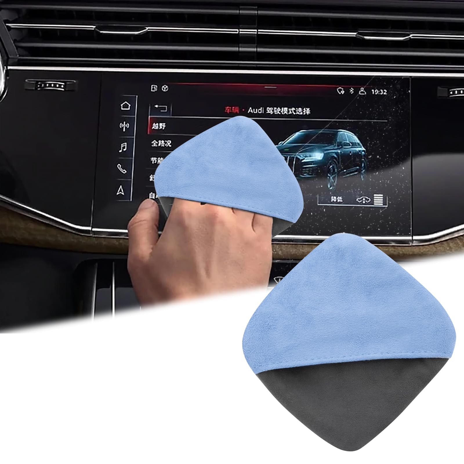 2 toallitas de limpieza cuadradas para pantalla táctil automática, paños de microfibra limpios, accesorios interiores de automóvil