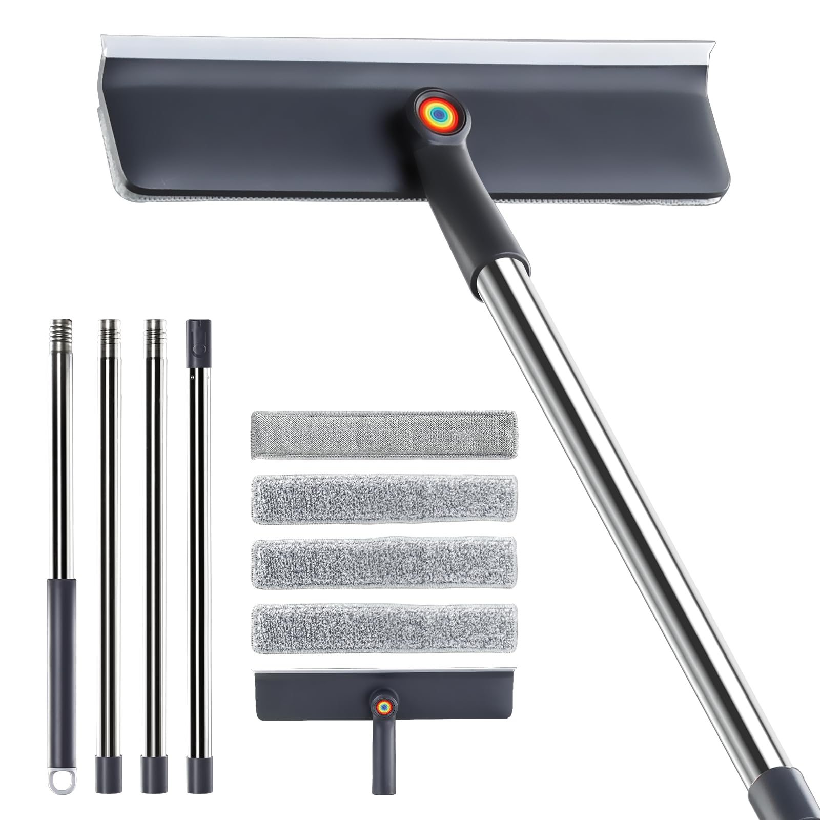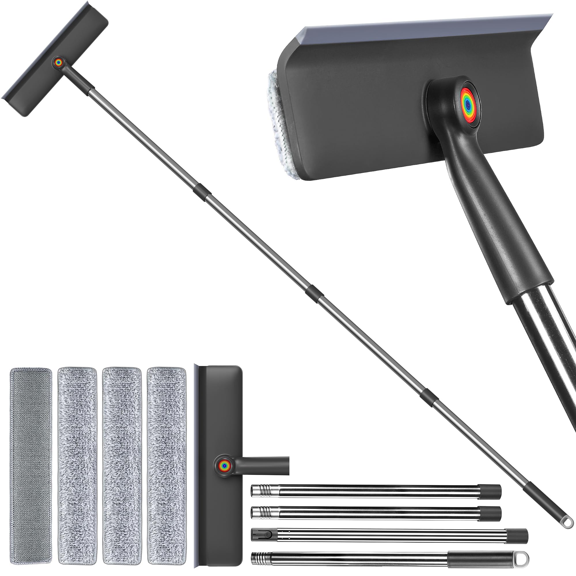 CTIME Limpiador de escobilla de ventana: 3 en 1 limpieza de ducha/pantalla con poste de extensión, kit profesional de limpieza de