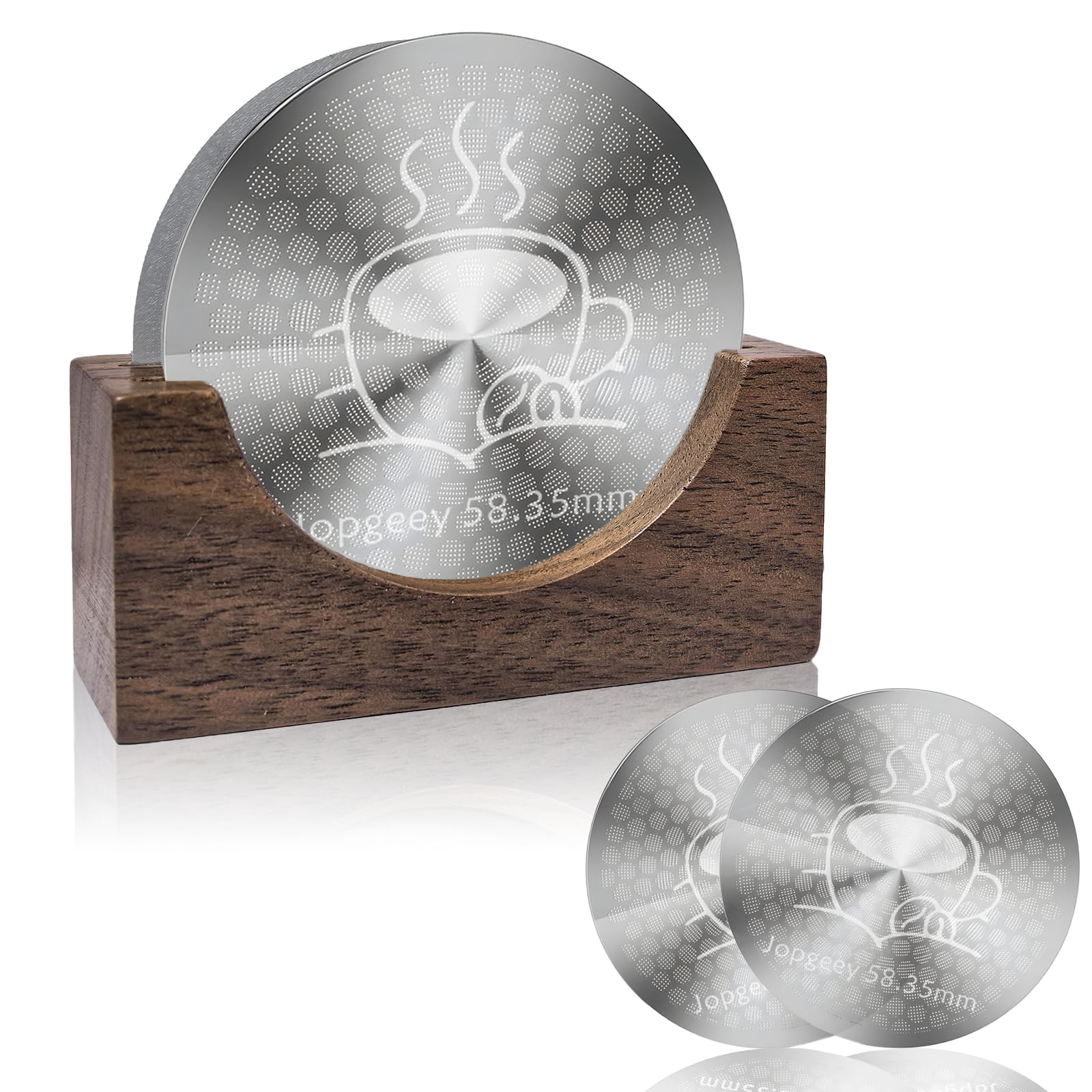 Paquete de 2 pantallas de disco de espresso de 2.297 in con soporte, filtro de café reutilizable ultra fino de 0.035 in 150 μm com