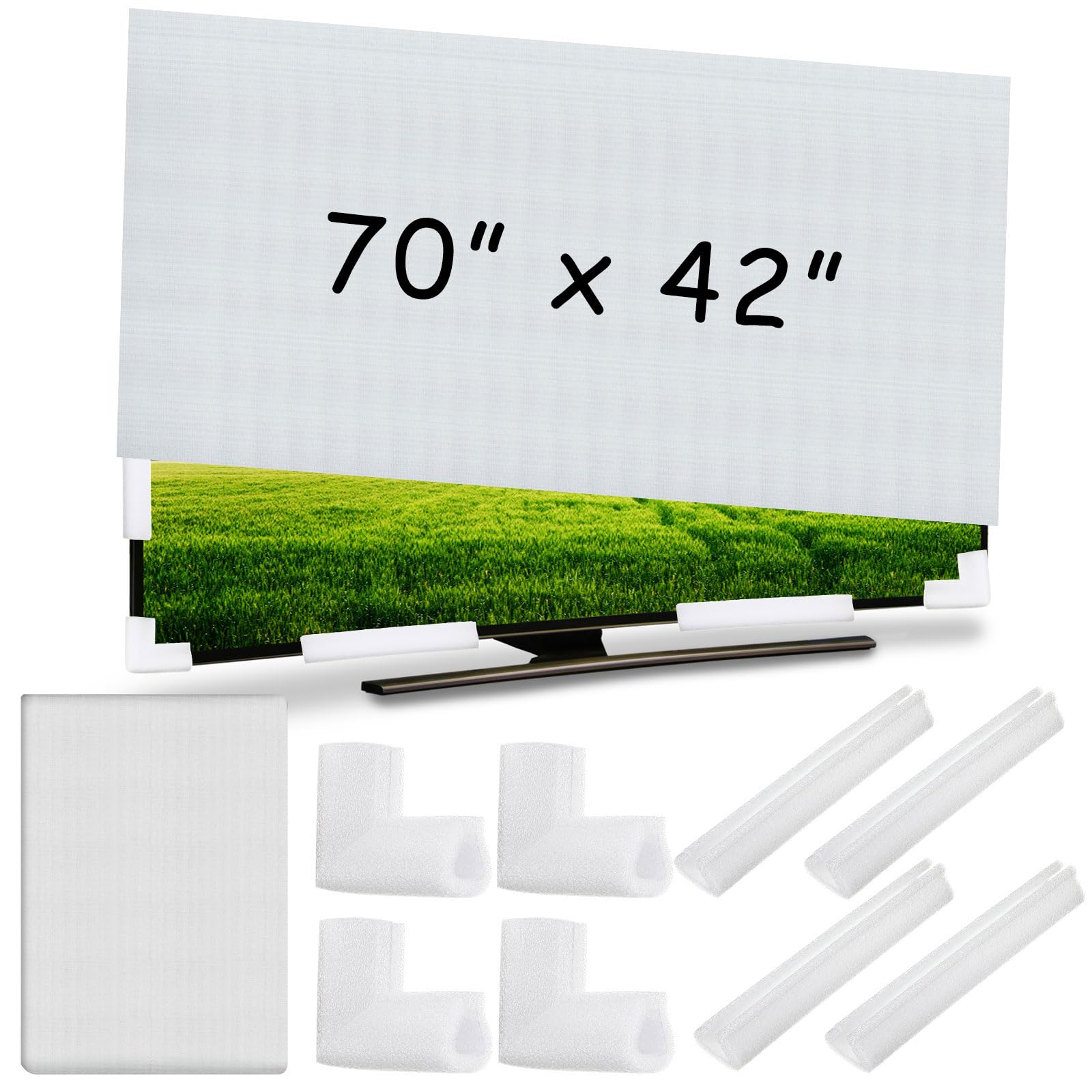 El juego de espuma acolchada incluye 1 funda de espuma plana para TV que se adapta a hasta 70 pulgadas de ancho x 42 pulgadas de a