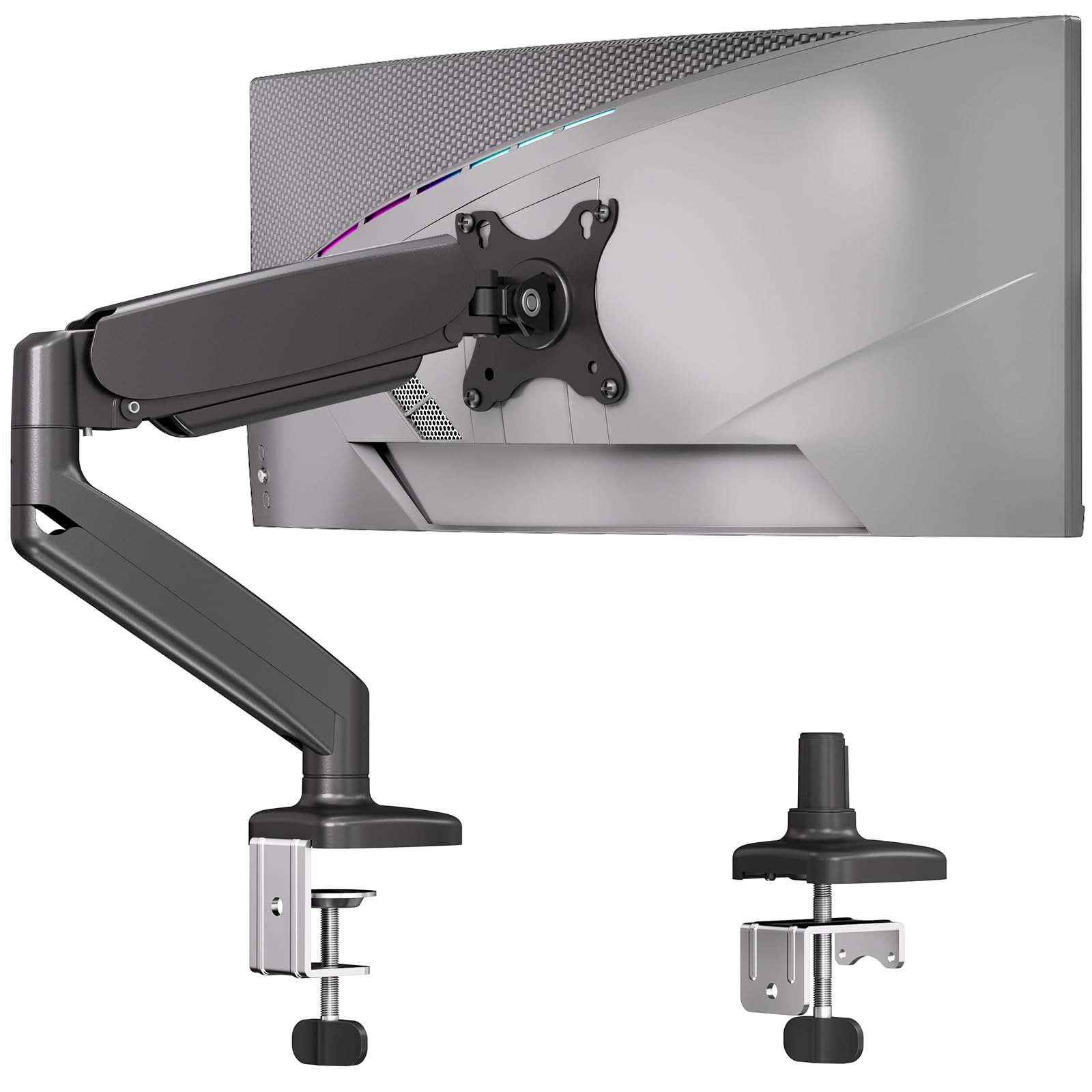 Soporte de escritorio para monitor individual para pantalla de 32 pulgadas de máximo, brazo de resorte de gas, soporte con abrazad