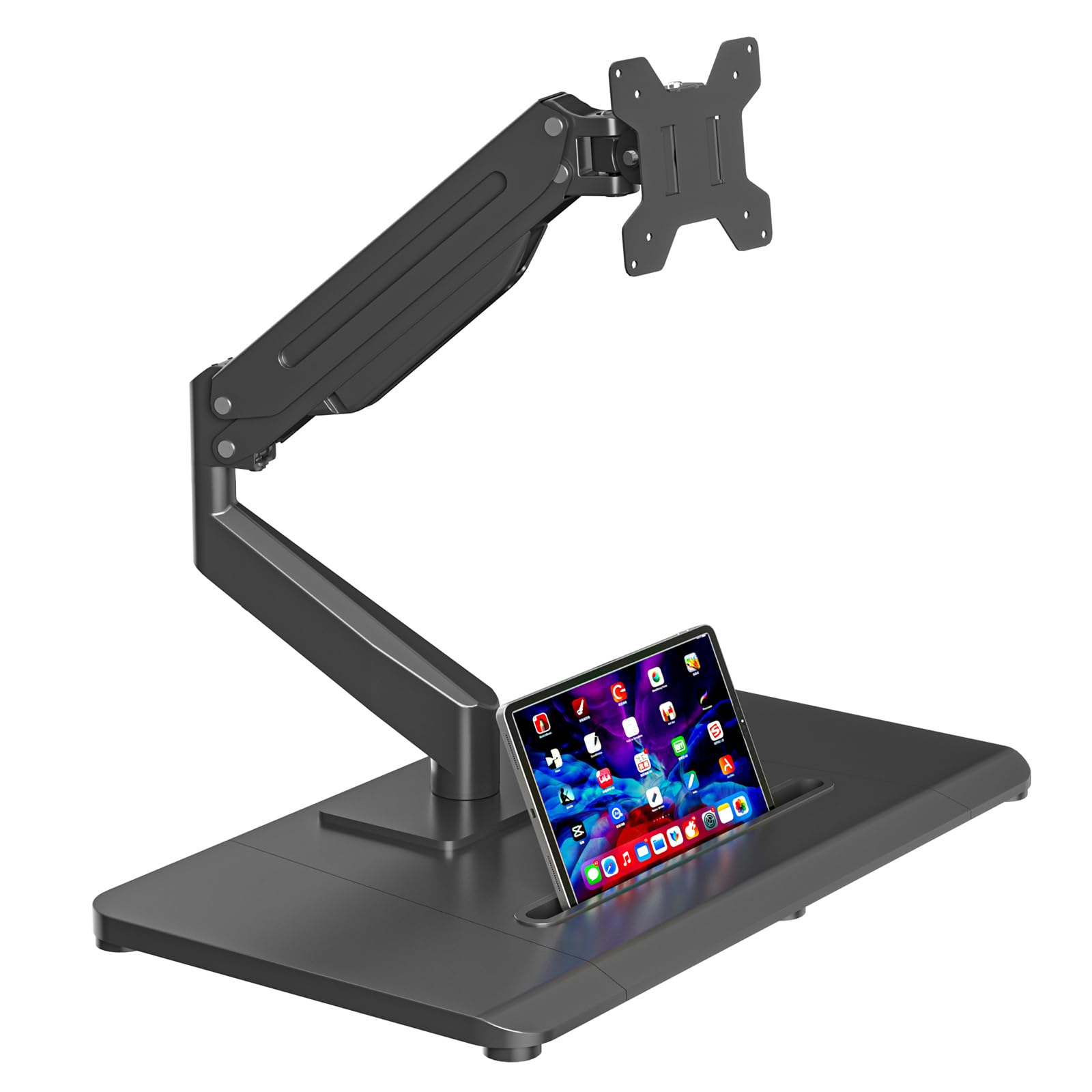 suptek Soporte de brazo de resorte de gas con base para un solo monitor, soporte de escritorio de pie neumático de altura ajustabl